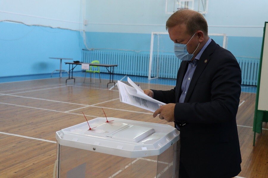 Свой голос он отдал на центральном счетном участке в селе Старое Дрожжаное, который организован в районном Доме культуры.