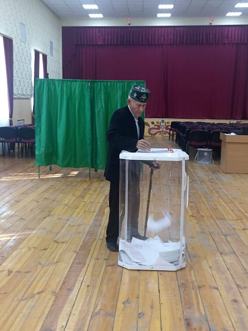На участке №1918 принял участие в голосовании Зайнак Аглиев, ветеран Великой Отечественной войны. По многолетней традиции Зайнак Аглиевич пришел на голосование ранним утром.