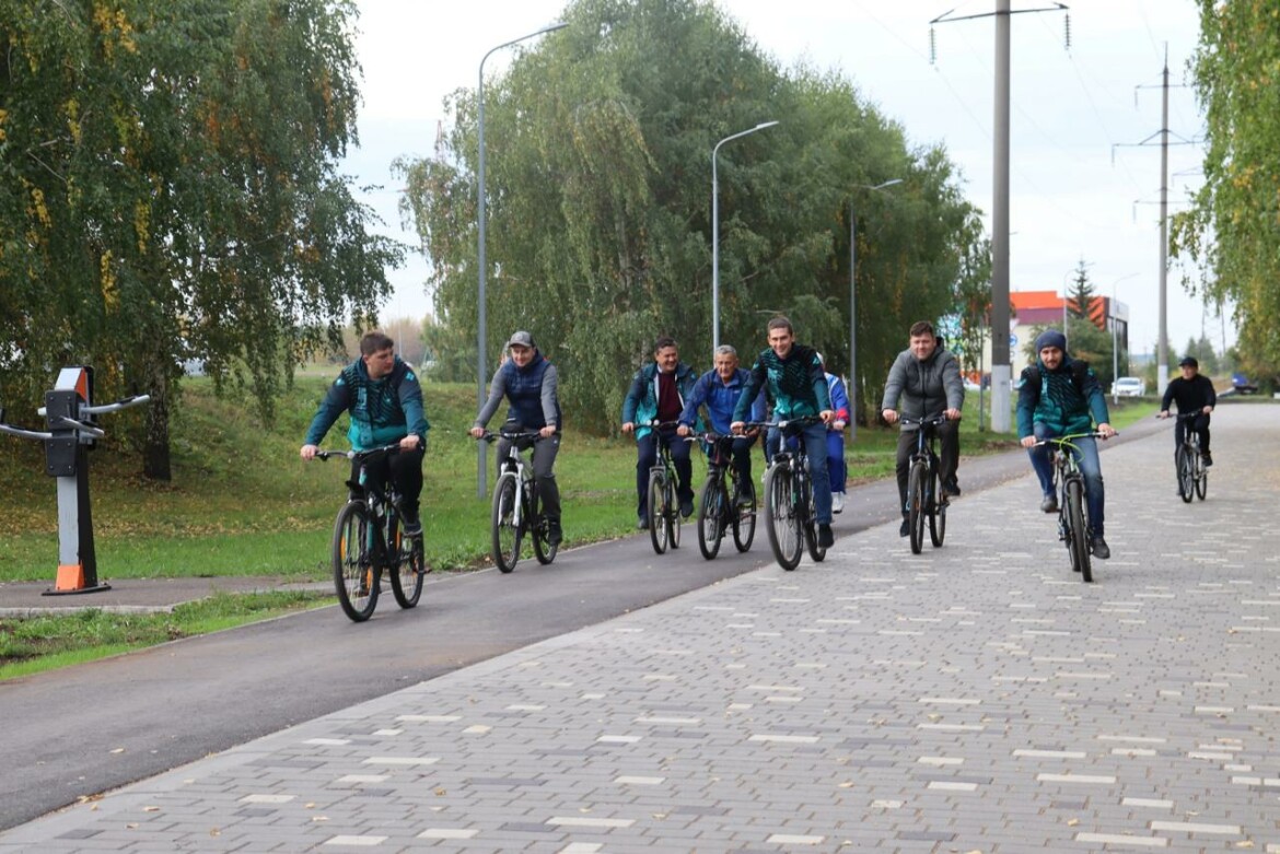 Сотрудники администрации Менделеевского района Татарстана во главе с руководителем муниципалитета Радмиром Беляевым присоединились к акции «День без автомобиля» и приехали на работу на велосипедах.