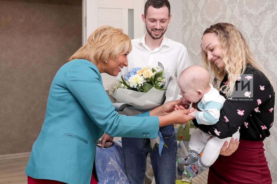 Глава Минтруда РТ поздравила с рождением первенцев две сельские семьи и вручила автокресла