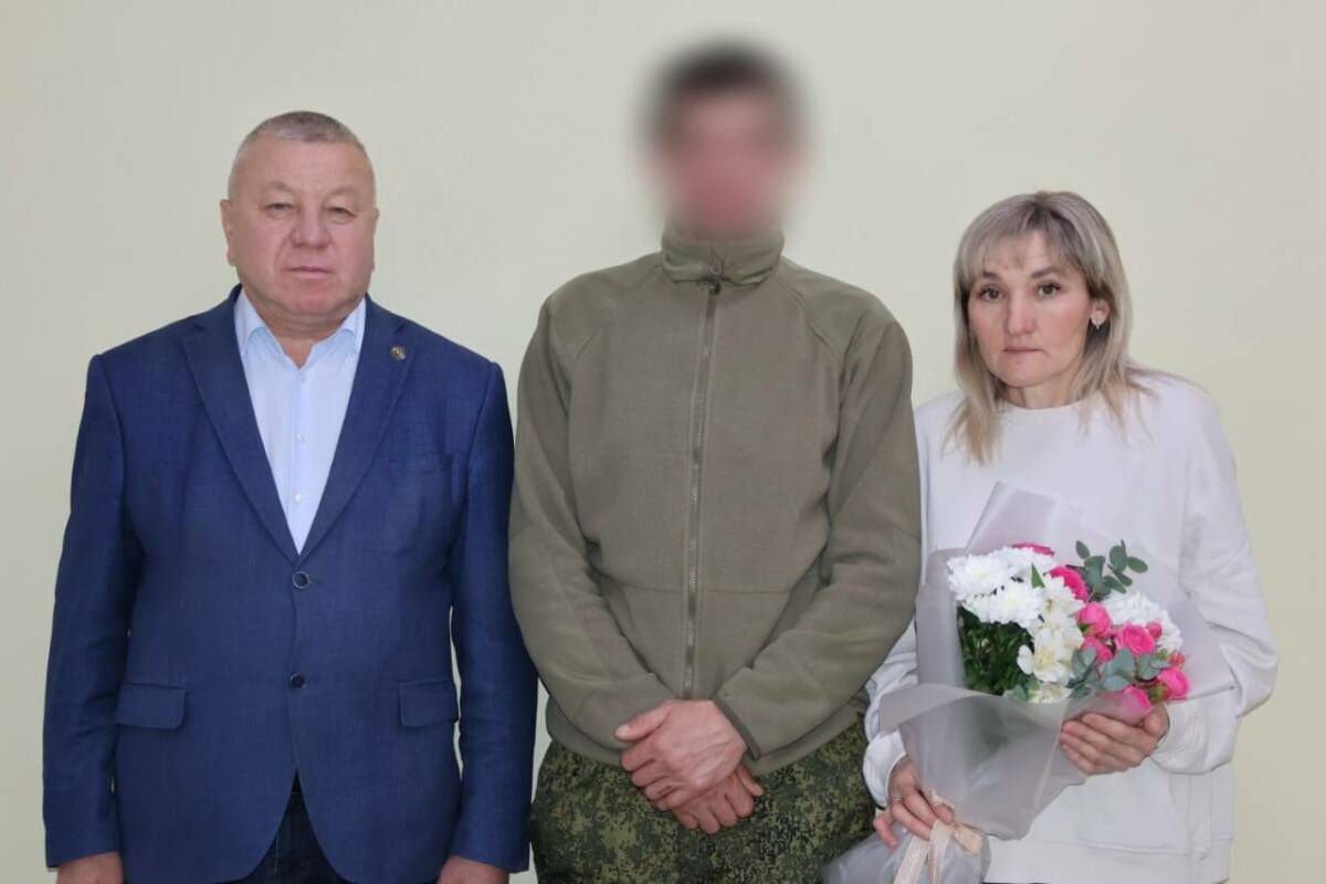 Глава Сармановского района Татарстана Фарит Хуснуллин встретился с участником специальной военной операции, его супругой и местным волонтером.