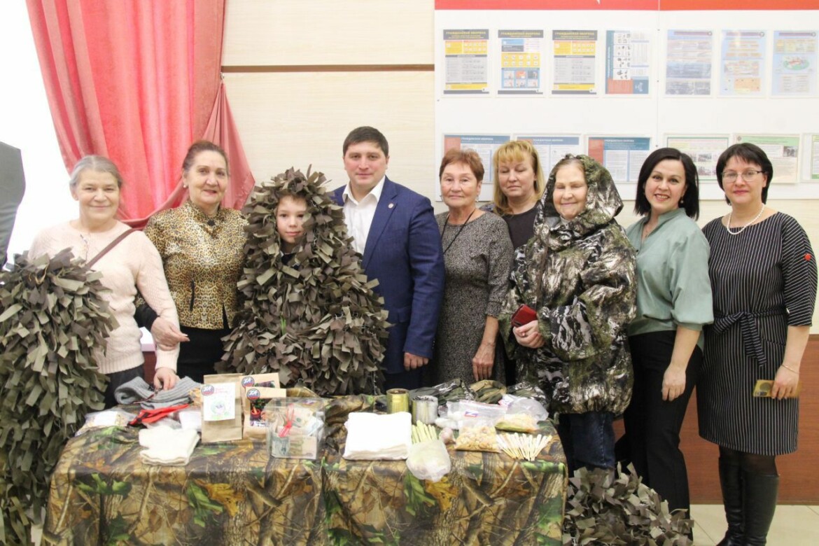Помимо концертной программы, в фойе организовали выставку, на которой волонтеры района представили маскировочные сети, костюмы лешего и другие необходимые бойцам СВО изделия.