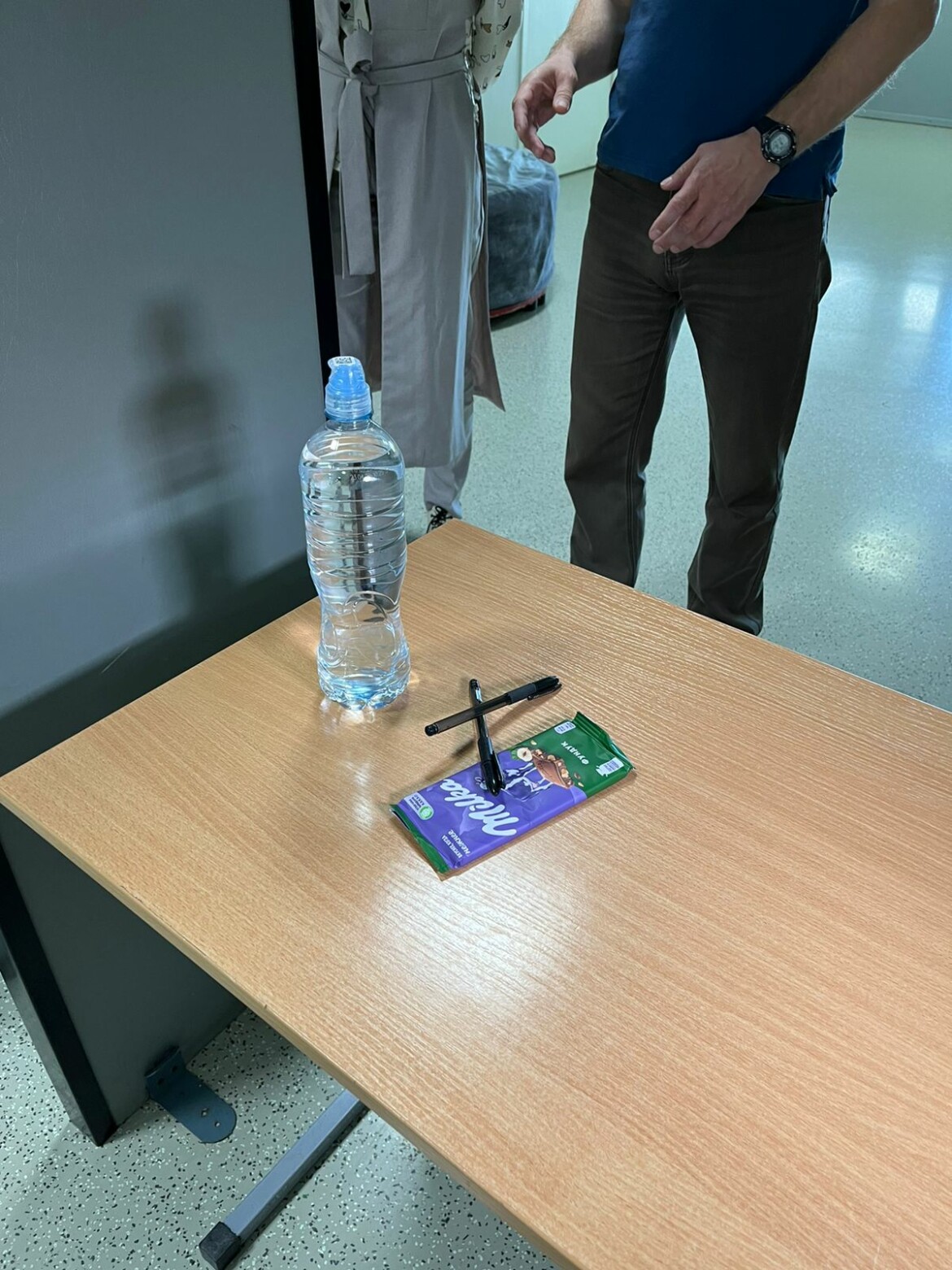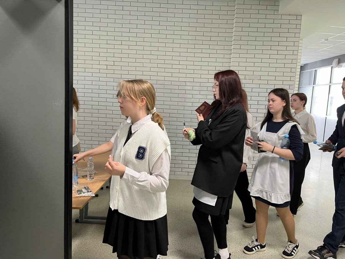 До экзамена оставалось меньше часа. До входа в аудиторию организовали контроль: необходимо было предъявить паспорт, выложить всё из карманов и пройти через рамку. На экзамен, помимо документа, школьники взяли с собой чёрные гелевые ручки, бутылку воды и плитку шоколада. Очередь продвигалась быстро, ребята старались не показывать волнение.
