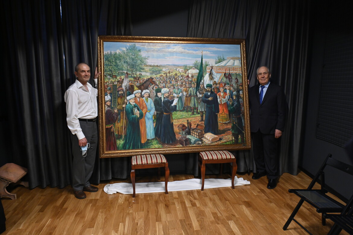После спектакля Шаймиев поздравил режиссера с юбилеем. Госсоветник подарил ему на 60-летие полотно художника Ильгизара Самакаева, изображающее церемонию принятия ислама волжскими булгарами 21 мая 922 года.
