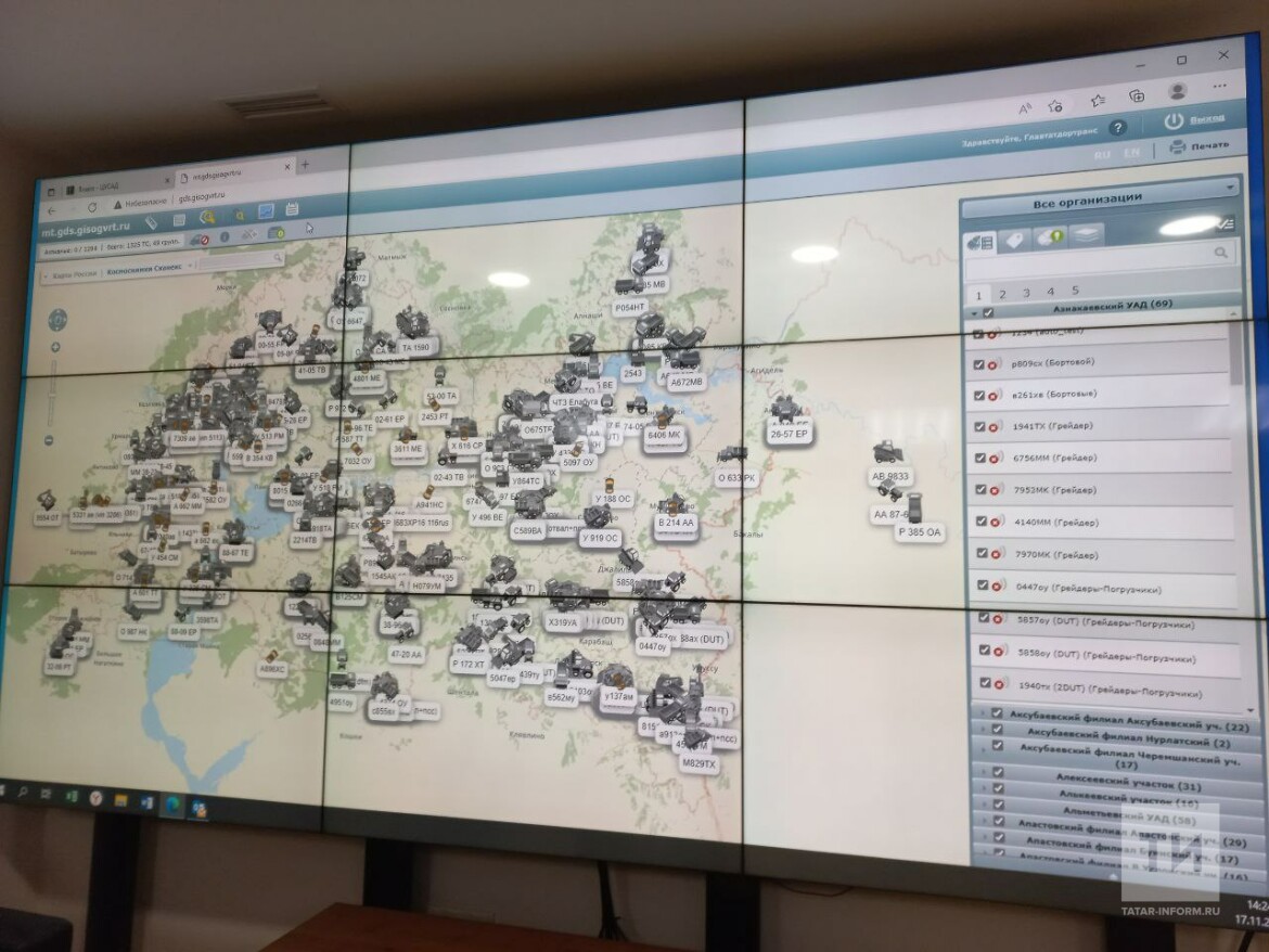 «На экранах показывается текущее состояние на дорогах. Есть индикаторная система, то есть когда происходит ухудшение погодных условий, начинают появляться сигналы. Диспетчер реагирует, звонит эвакуаторам, подрядным организациям, которые закреплены за участком. Вот, например, красным на экране высвечивается 17-й километр дороги Бугульма – Азнакаево, 32-й километр дороги Алексеевск – Билярск. Это означает, что там происходит ухудшение погодных условий, возможно возникновение гололедицы», – пояснил начальник управления.