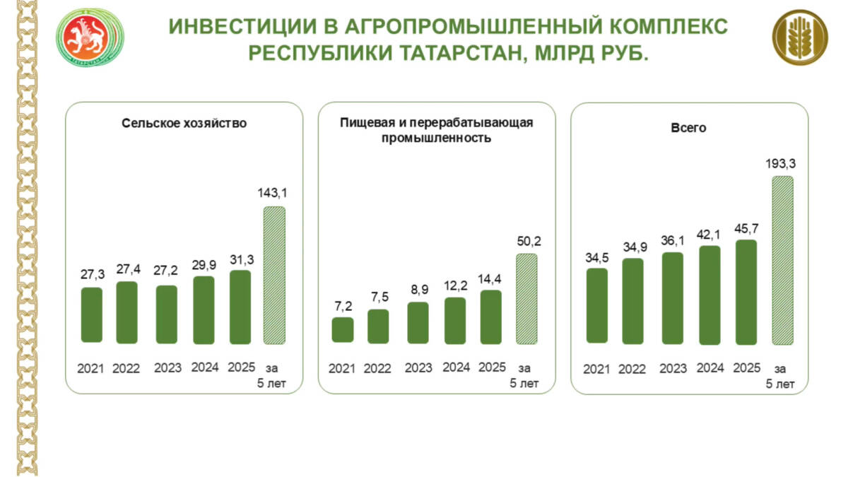 АПК Татарстана по итогам 2025 года нарастит производство на 7%