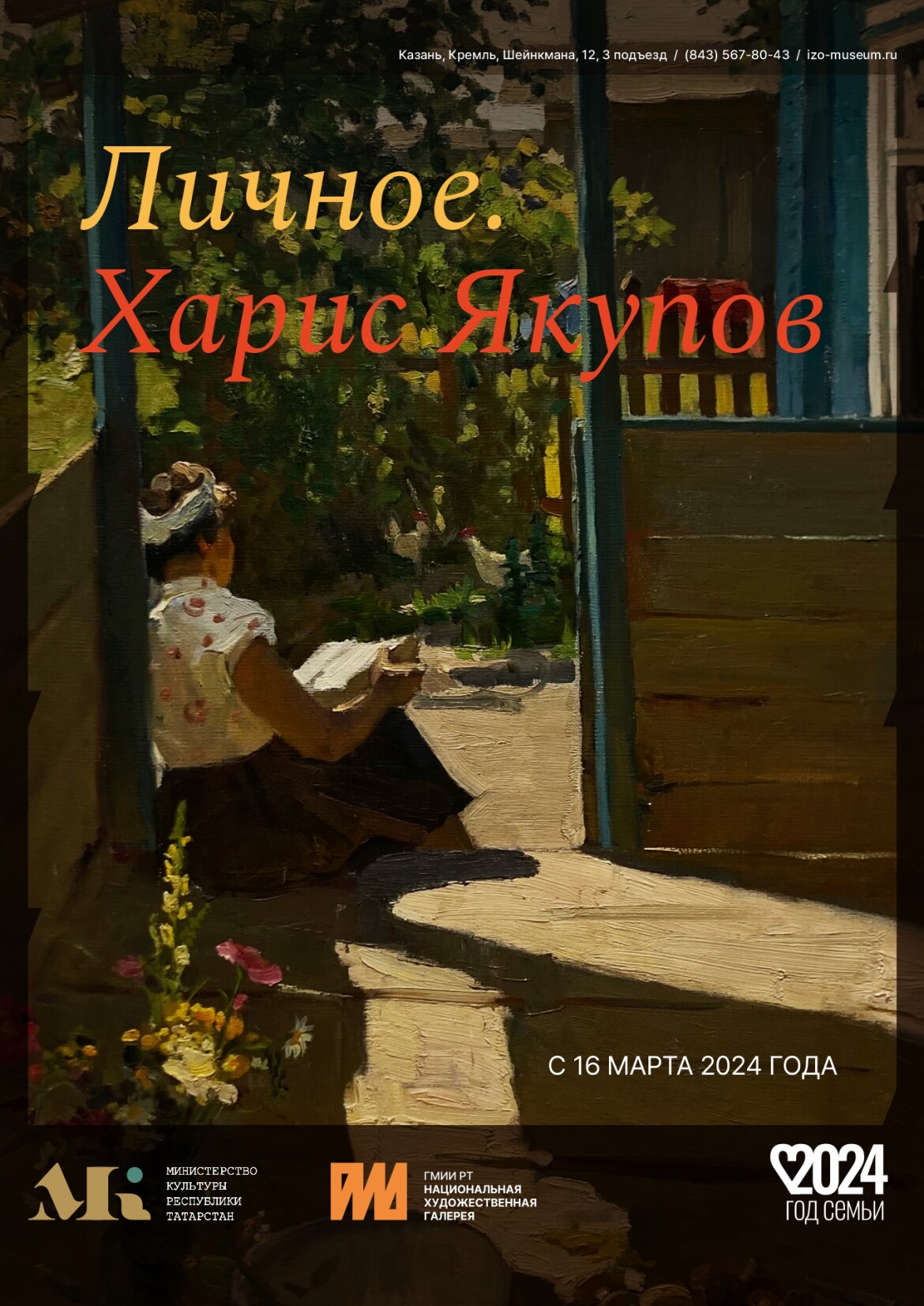 С 16 марта в Национальной художественной галерее «Хазинэ», подразделении Музея ИЗО Татарстана на территории музея-заповедника «Казанский Кремль», можно будет посетить большую выставку «Харис Якупов. Личное». На ней будут экспонированы более сотни картин и самого академика Российской академии художеств, народного художника СССР, лауреата Сталинской премии третьей степени, Госпремии РСФСР имени Ильи Репина и региональной премии имени Габдуллы Тукая, и членов его семьи – супруги Рушании и сына Фарида.