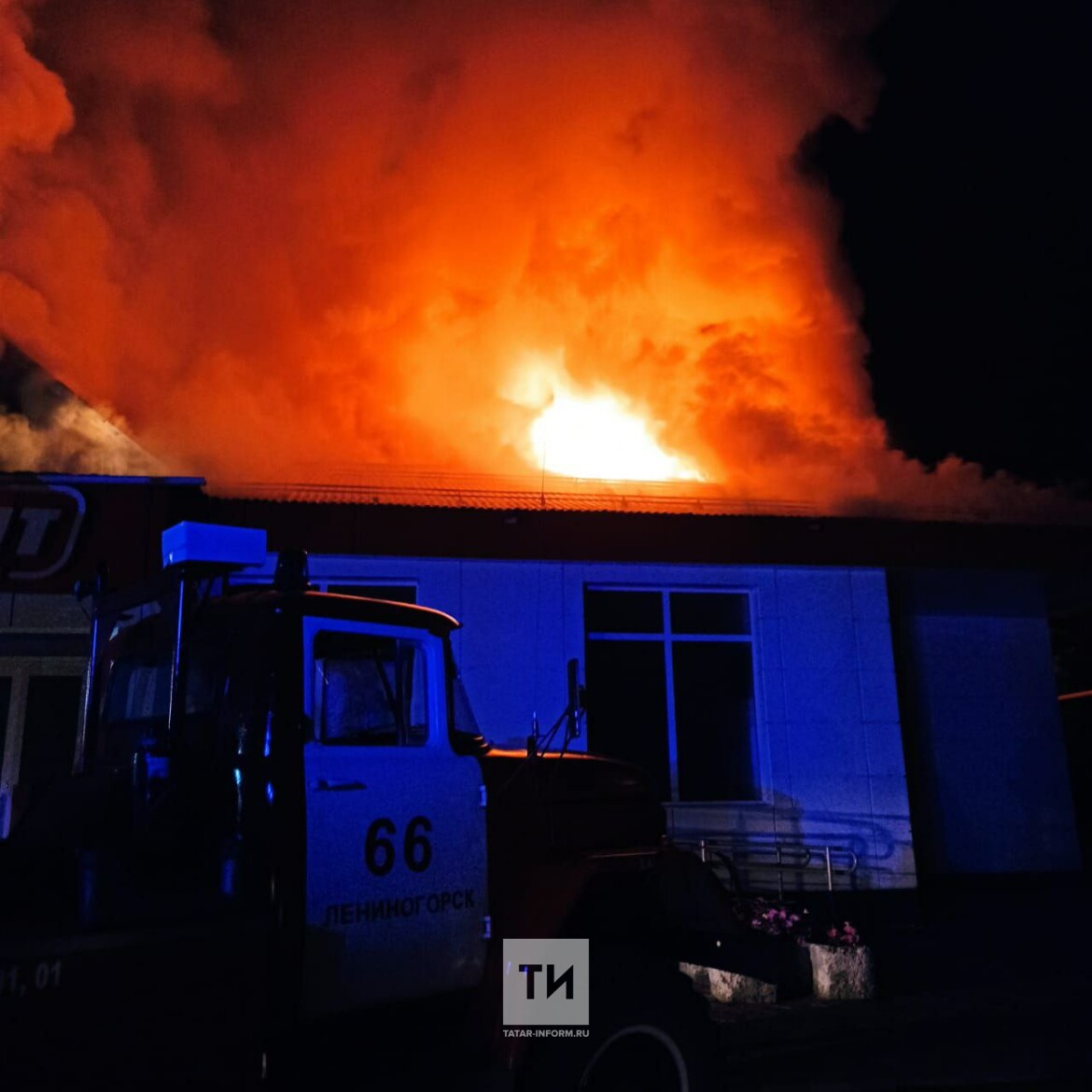 Горевшую крышу продуктового магазина потушили пожарные ночью в Лениногорске