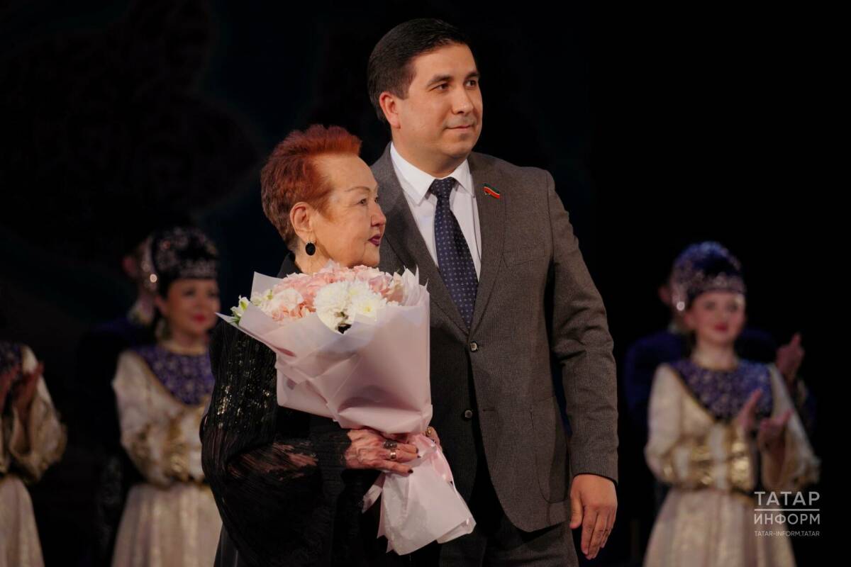 Кроме того, на сцену вышла семья юбиляра: ее муж Зирак Юсупов и сын Тимур с семьей. «Возможно, я как муж должен ее хвалить. Но татарская пословица для меня священнее, повторять ее я не буду. В этом году, если Бог даст, нас ждет 55-летие супружеской жизни. Эта цифра, 55, – мера нашей жизни, нашей любви друг к другу. Спасибо зрителям, пришедшим в этот зал!» – сказал Зирак Юсупов.