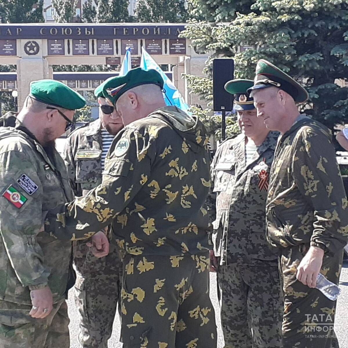 Далее собравшихся пограничников запаса и ветеранов по очереди поздравляли Ветеран афганской войны, подполковник авиации Тимур хазрат Ибрагимов, председатель Совета ветеранов пограничной службы ФСБ РФ по РТ Шамиль Каримов, председатель Союза общественных деятелей РТ Александр Даренков и Председатель Союза десантников РТ Юрий Суворов, а также специальный гость, боец Содружества Чистопольского района, участник СВО с позывным «Бурнаш».