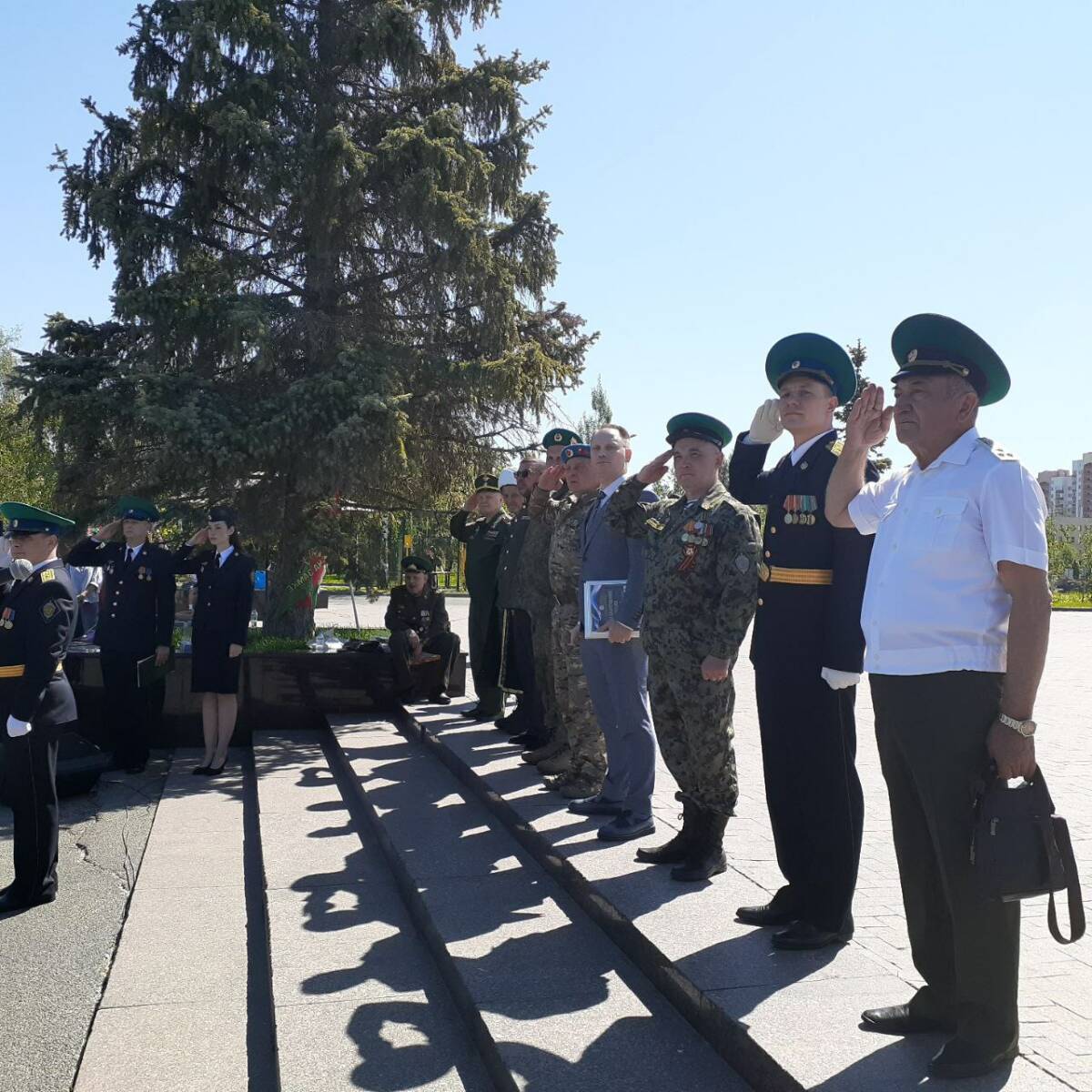 Настал момент, когда ветераны службы, военнослужащие запаса и действующие пограничники, сняв головные уборы и склонив знамена с названием подразделений, замерли на минуту в строю, почтив память павших товарищей.