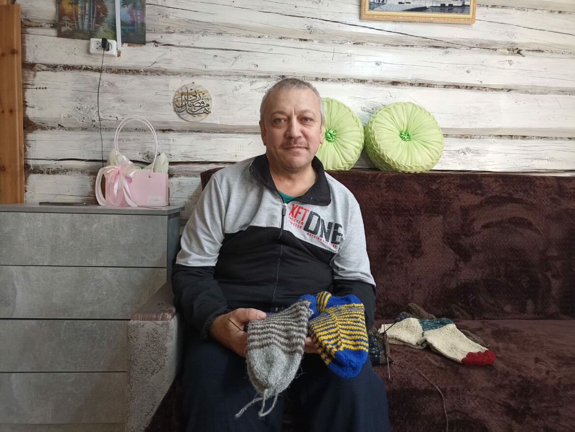 Жители села Уркуш Кукморского района активно помогают российским военным, находящимся на передовой. Летом они плетут маскировочные сети, а с наступлением холодов начинают вязать носки, варежки и шапки. Один из волонтеров — Ринат Галимзянов, который, сломав стереотипы, активно занимается вязанием одежды вместе с рукодельницами.
