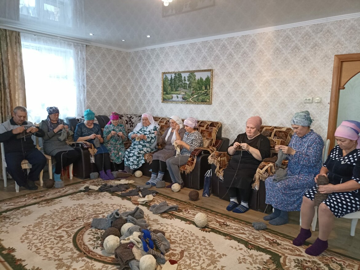 Женщины села Уркуш и Ринат Галимзянов вечерами собираются вместе для оказания помощи бойцам. По словам вязальщиц, те, кто со спицами не на «ты», помогают деньгами или привозят пряжу домой.