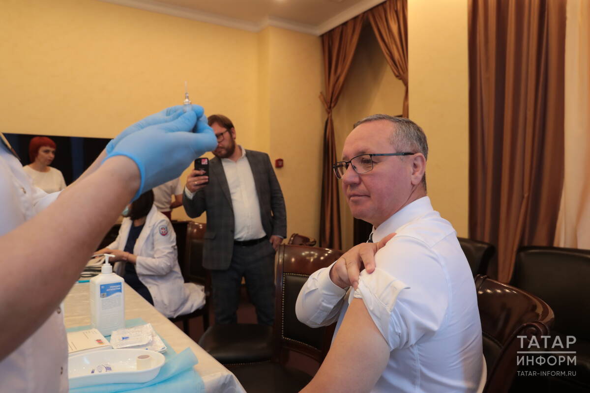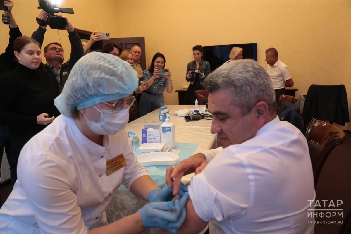 Министры и главы ведомств РТ показали пример, привившись под прицелом видеокамер