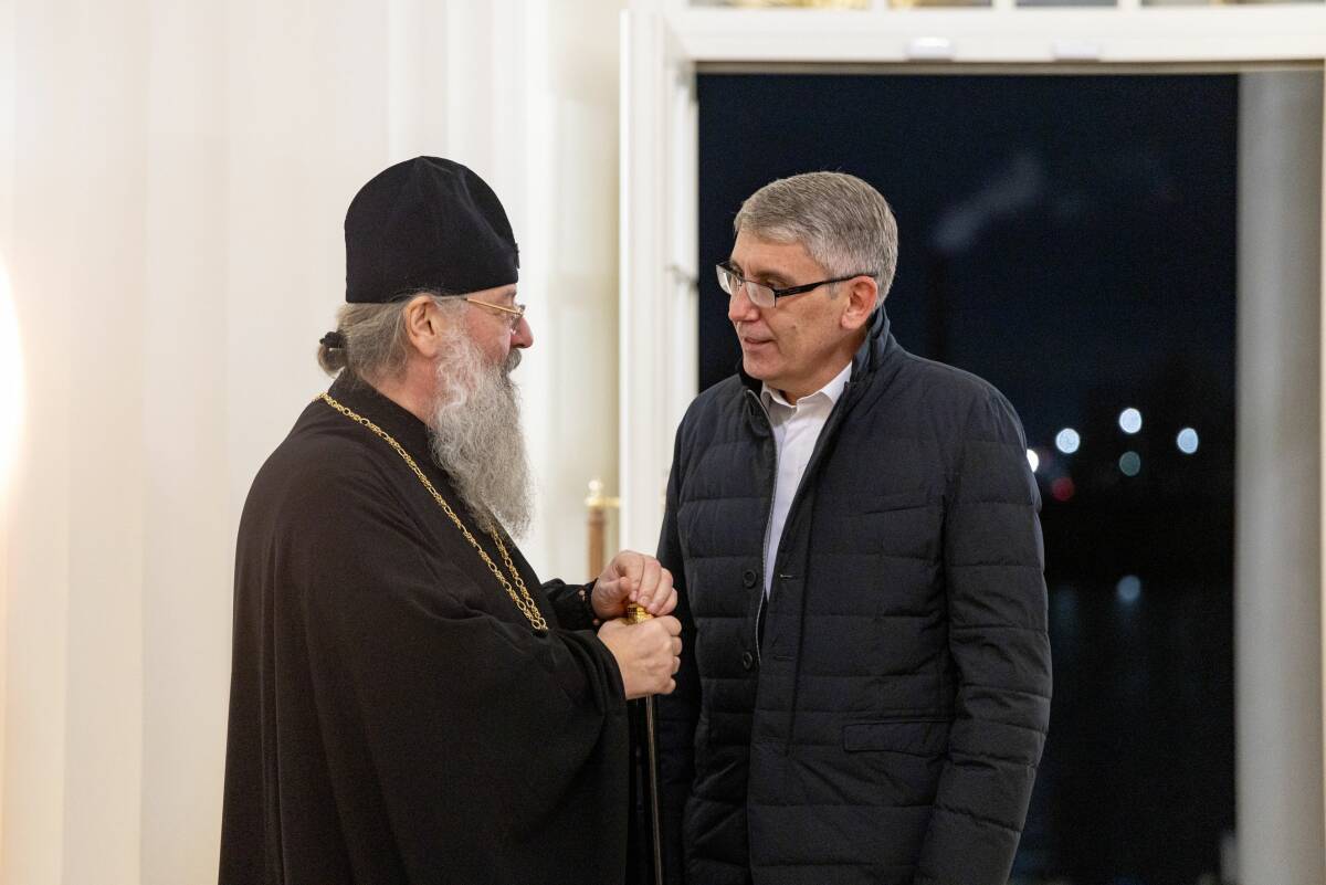Дмитрий Миляев поблагодарил владыку Кирилла за теплый прием на Казанской земле. На молитвенную память гость столицы Татарстана передал храму-памятнику икону великомученика Георгия Победоносца.