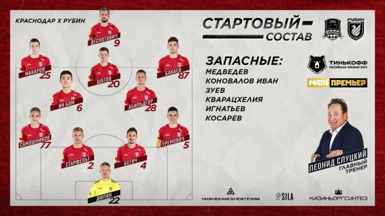 В остальном стартовый состав «Рубина» на игру 11-го тура против «Краснодара» видится вполне стандартным. Единственное, на что стоит обратить внимание — это чересчур короткая скамейка запасных.