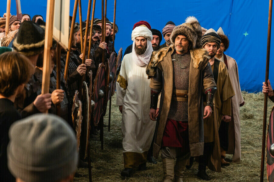 Конечно, это объективные причины. Но понятны и чаяния татарского зрителя, который в столь ожидаемом и нужном ему фильме хочет видеть знакомые и близкие ему лица. На роль араба – Ибн Фадлана взяли Зульфата Закирова, а в роли предводителя племени сувар видим переодетого в чувашский национальный костюм татарского журналиста и артиста Ильдара Киямова. Пусть фильм на русском и не ставилось цели пригласить известных московских артистов, но хотя бы искренне любимых татарами актеров можно же было взять? Возможно, появление таких артистов хоть немного компенсировало бы отсутствие в фильме нашего родного языка.
