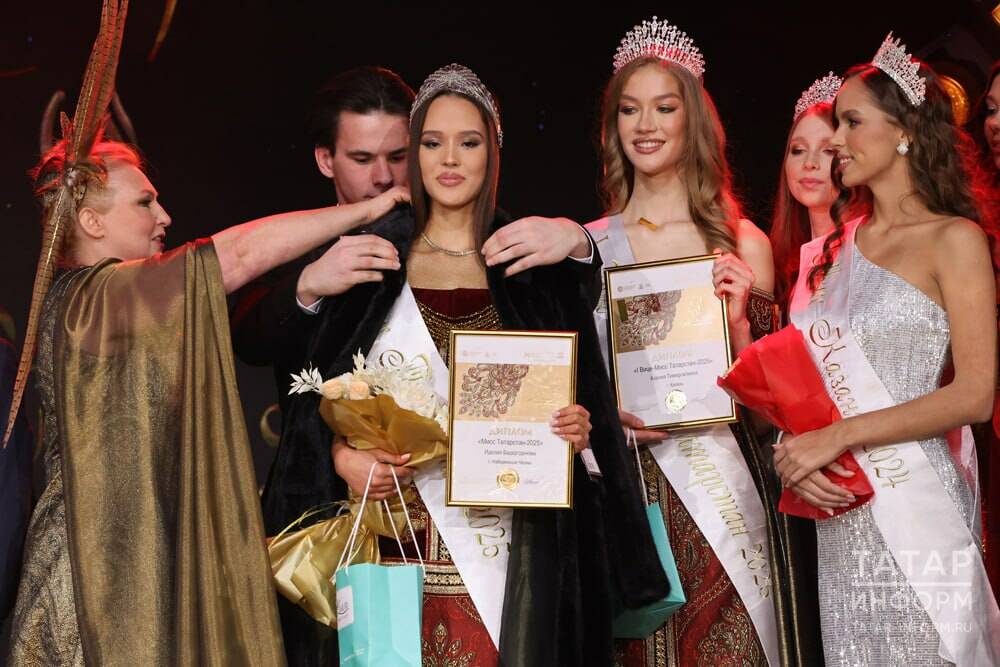 Обладательницей титула «Мисс Татарстан - 2025» стала 17-летняя Иделия Бадертдинова из Набережных Челнов. Она получила корону из рук предыдущей победительницы конкурса и прошла в короне финальное дефиле.