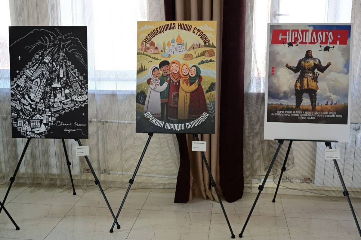 Перед заседанием Игорь Комаров и губернаторы регионов ПФО посетили выставку плакатного искусства «Время смыслов» имени Героя России Сергея Ефремова, который погиб при освобождении Курской области в феврале 2025 года.