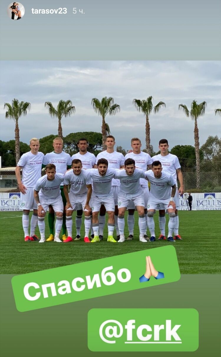 Футболисты казанского клуба перед контрольным матчем с «Шерифом» вышли сегодня в футболках со словами поддержки в адрес получившего травму Тарасова.