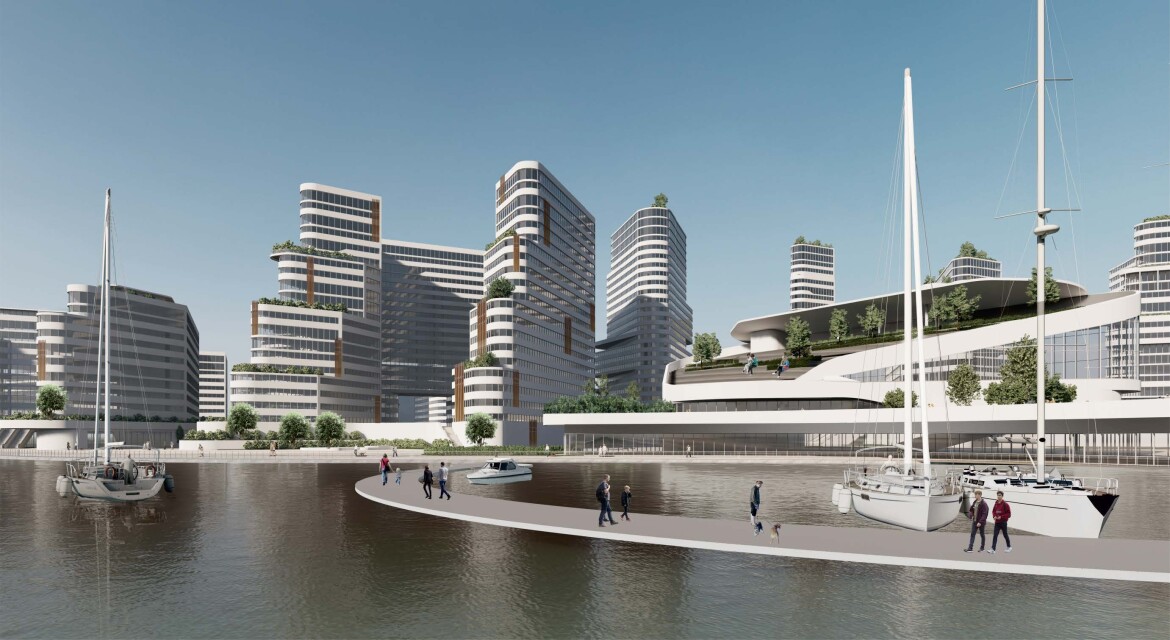 • ООО «Архитектурная Мастерская «Старая Казань» (Казань, Россия). Эксперты из Татарстана увлечены нестандартной геометрией. Они предлагают возвести на берегу реки белоснежные высотки с фасадами из «ломаных» линий;