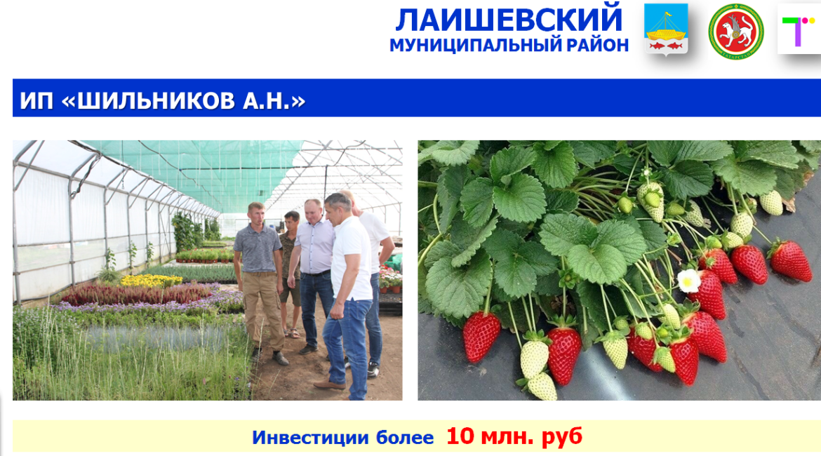 КФХ «Гильмутдинова Гузель Тахировна» за первое полугодие текущего года реализовала рассаду однолетников и горшечной продукции на сумму более 8 млн рублей. Продукция была выращена в теплицах с площадью более 1,5 тыс. квадратных метров. В 2021 году заложен малинник площадью 2 га с дальнейшим увеличением в текущем году до 4 га. Общий объем инвестиций составил более 5 млн рублей.