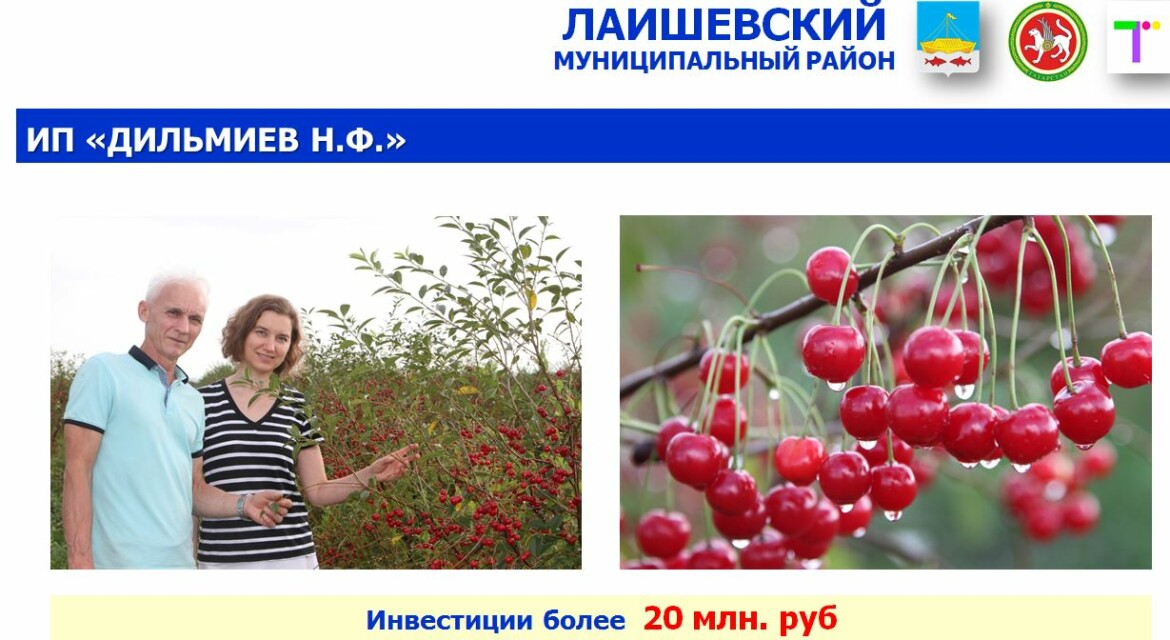 ИП «Дильмиев Наиль Фатхулбаянович» рассадил 3,5 га вишневого сада и уже в текущем году начал первый сбор урожая. Валовая урожайность к концу сезона составит более 30 тонн вишни. В проект было инвестировано более 20 млн рублей. Планируется строительство цеха по первичной переработке вишни мощностью 70 тонн/год с объемом инвестиций 30 млн рублей.