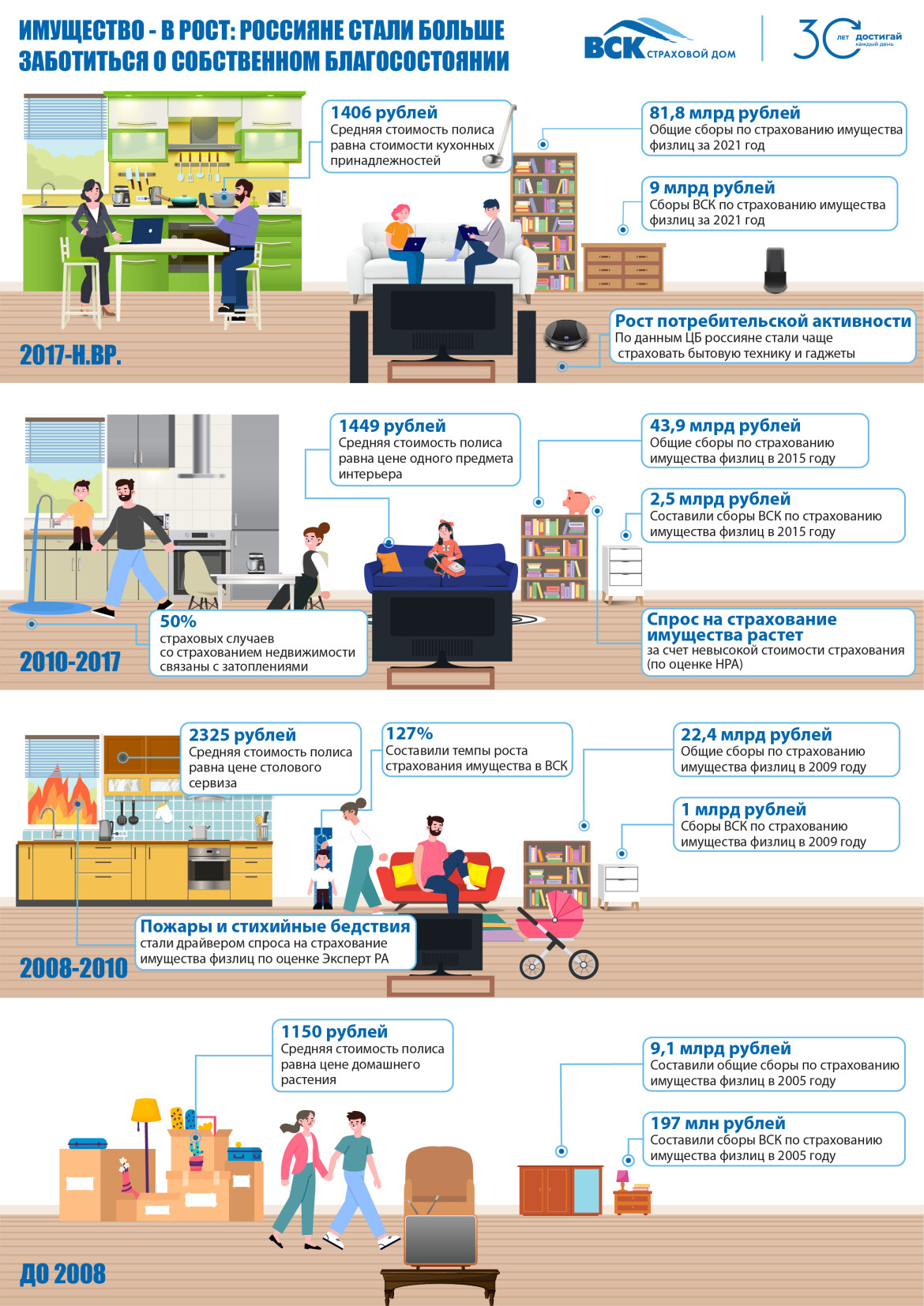 «ВСК развивалась и росла вместе с рынком, мы наблюдали как «бум» страхования имущества в связи со стихийными бедствиями в 2010 году[5], так и небольшую стагнацию сегмента в 2020 году на фоне снижения доходов населения[6]. Финансовые показатели страховщика всегда отражают не просто прибыль компании, но и степень доверия со стороны клиентов. Основной задачей любой страховой компании является финансовая поддержка страхователей, на первом месте всегда должны быть их интересы. Для примера, объем выплат нашим клиентам–физлицам составил по итогам года 644 млн рублей[7]. Все это позволяет ВСК удерживать стабильно высокий уровень качества сервиса, наращивать долю данного вида страхования в портфеле ВСК. Так, если в 2012 году на ИФЛ приходилось 4,2% сборов компании, то по итогам 2021 года этот показатель вырос до 10,6%», — отмечает Вера Гезердава, заместитель генерального директора по управлению продажами Страхового Дома ВСК.