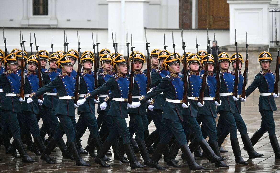 Затем Владимир Путин прошел на Соборную площадь, где состоялся смотр солдат Президентского полка. Путин произнес поздравление в честь 88-й годовщины образования полка.