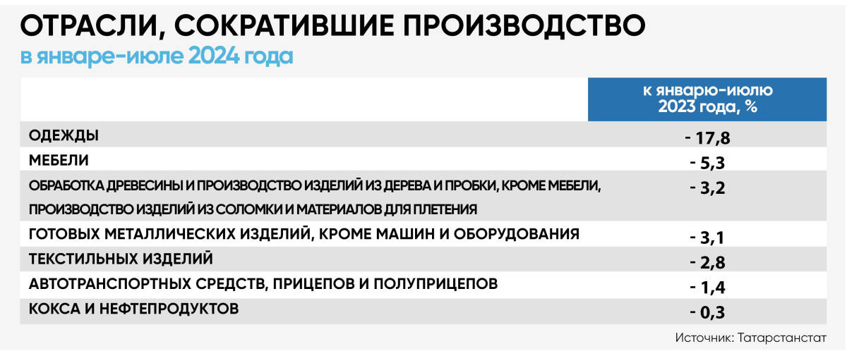 В обработке – плюс 4,2%. Это в два раза медленнее, чем по России в целом, где рост на 8,6%. Но по стране, по данным Минэкономразвития РФ, основным драйвером роста в обрабатывающей промышленности выступает машиностроение, в том числе связанное с ВПК, а также металлургия. Тогда как в Татарстане драйверы другие – производство кокса и нефтепродуктов, химпром и автопром. А динамика в этих отраслях у нас в этом году, мягко говоря, не вдохновляющая.