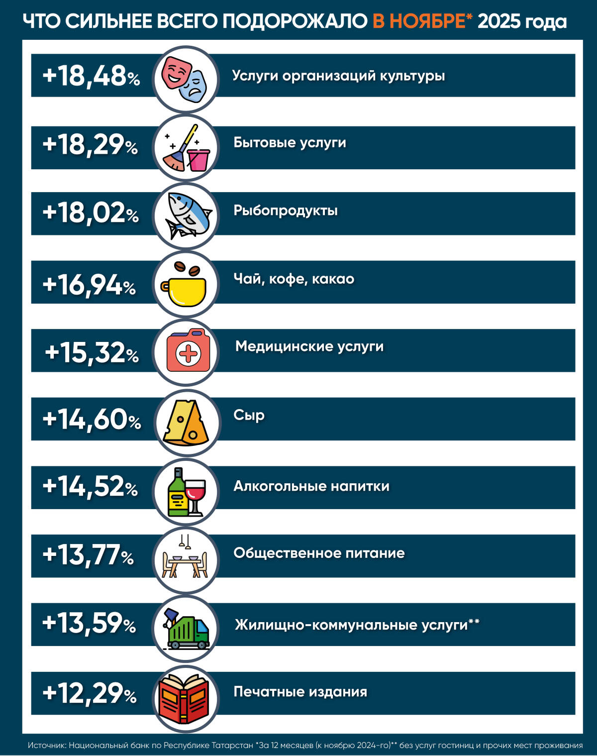 Интересно, что в России в целом цены в ноябре выросли на те же 0,42%. Но динамика в отдельных товарах и услугах в республике, конечно, отличалась от общероссийской.