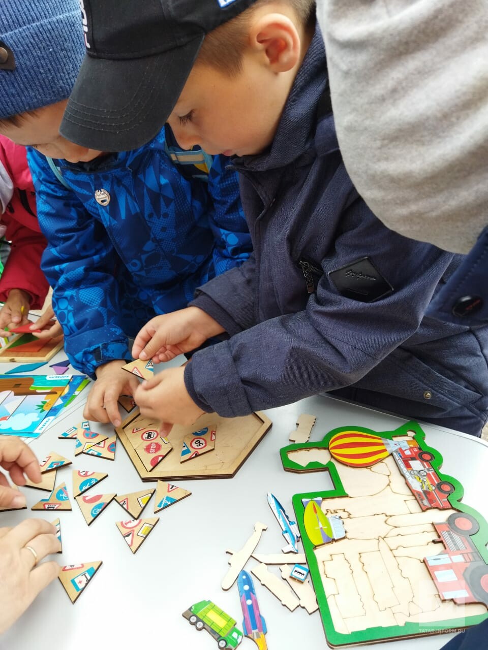Ребята вместе с полицейскими раскладывали веселые пазлы, а также оттачивали навыки управления велосипедом на специальной дорожке.