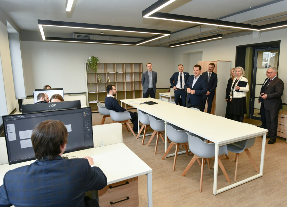 Мэр Казани Ильсур Метшин осмотрел зал совещаний, а также заглянул в кабинеты некоторых сотрудников. На сегодняшний день в Институте развития города трудятся 149 человек, 75% из них — молодые специалисты до 35 лет.