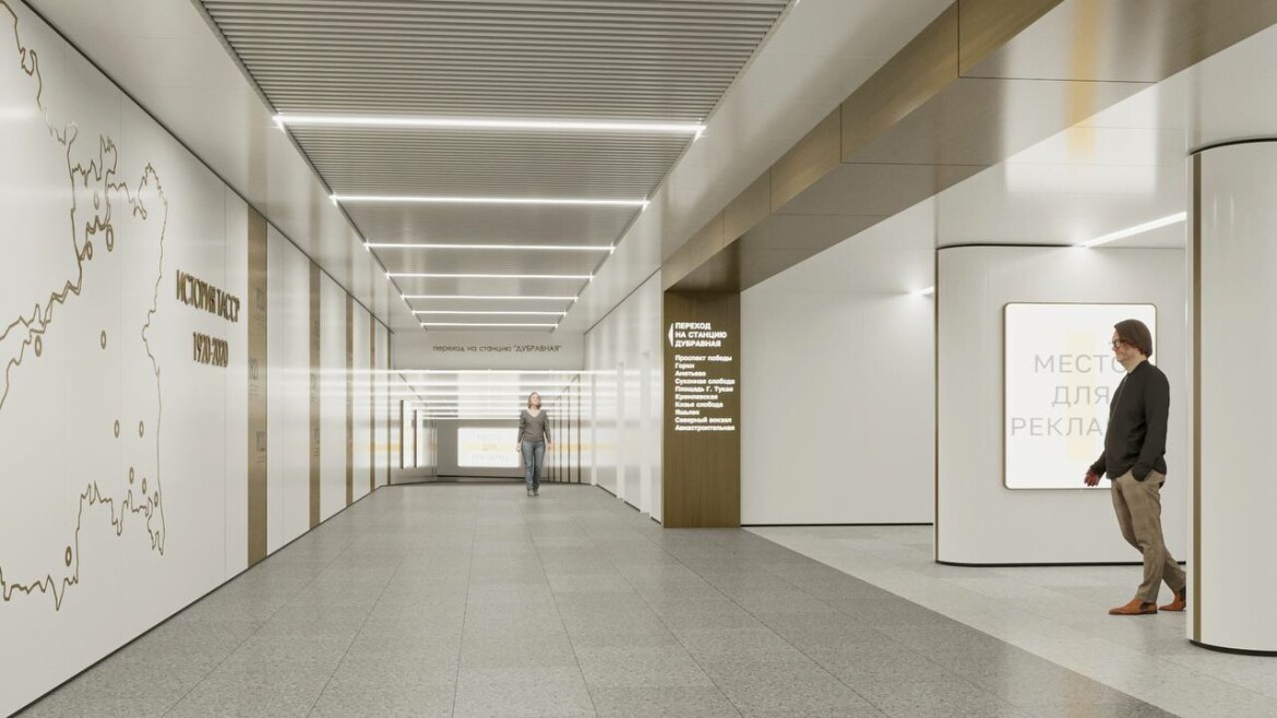 Вестибюль станции, по замыслу архитекторов, будет представлять собой «открытое пространство с элементами металла и камня, отражающими современный стиль и традиции».
