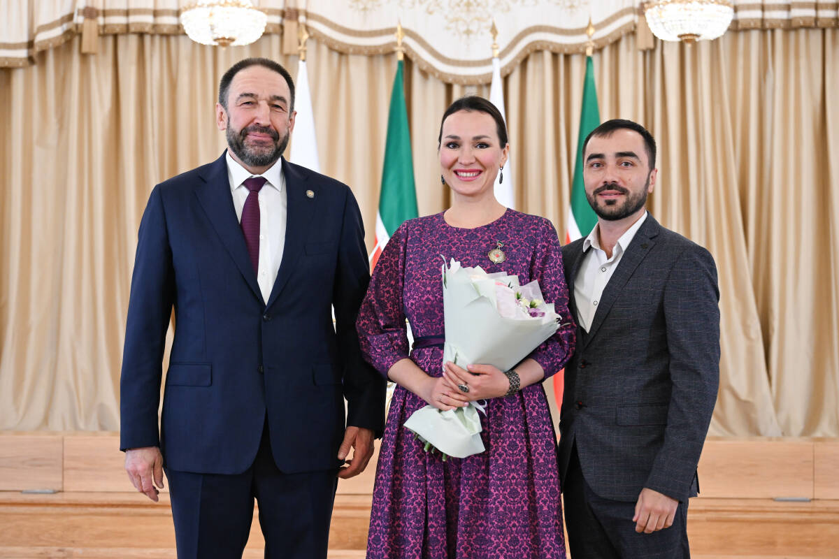 Маме пятерых детей Дилюзе Мисбаховой вручена медаль «Ана даны – Материнская слава». На церемонию награждения она пришла вместе с супругом. Медалью «100 лет образования ТАССР» отмечены начальник отдела Госжилфонда при Раисе РТ Елена Галиева и народный артист Татарстана Габдельфат Сафин. Участники церемонии удостоены почетных званий России и Татарстана, благодарности Президента РФ.