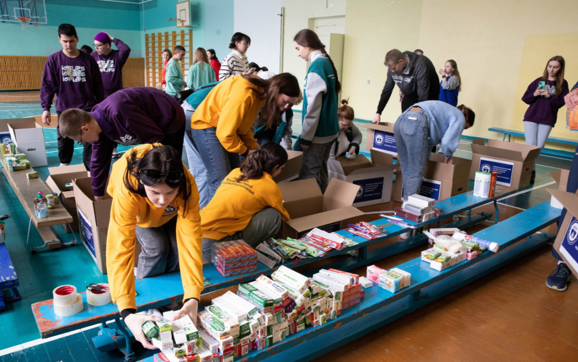 Студенты и преподаватели университета в этот раз собрали все необходимое для детей: питание, смеси, подгузники, средства личной гигиены — получилось в итоге более 20 коробок.