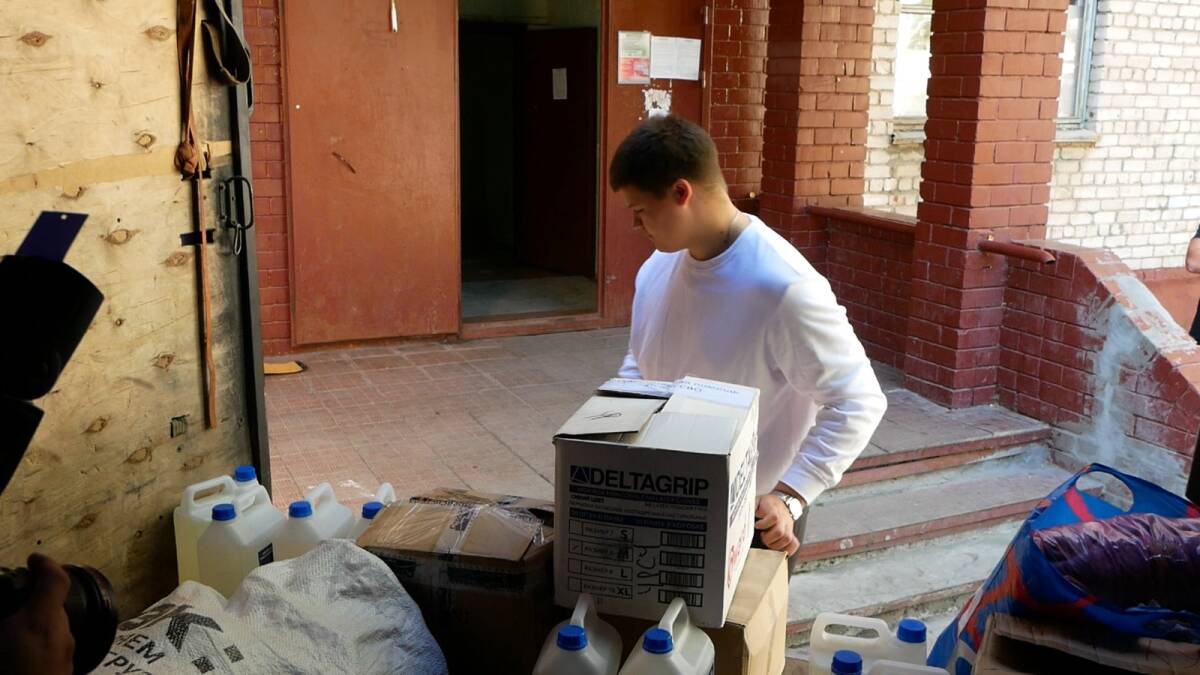 С утра волонтеры спешно грузят в кузов газели упаковки мясных консервов, коробки с крупами и макаронами. В составе гуманитарного груза много средств гигиены — влажные салфетки, туалетная бумага, твёрдое и жидкое мыло.