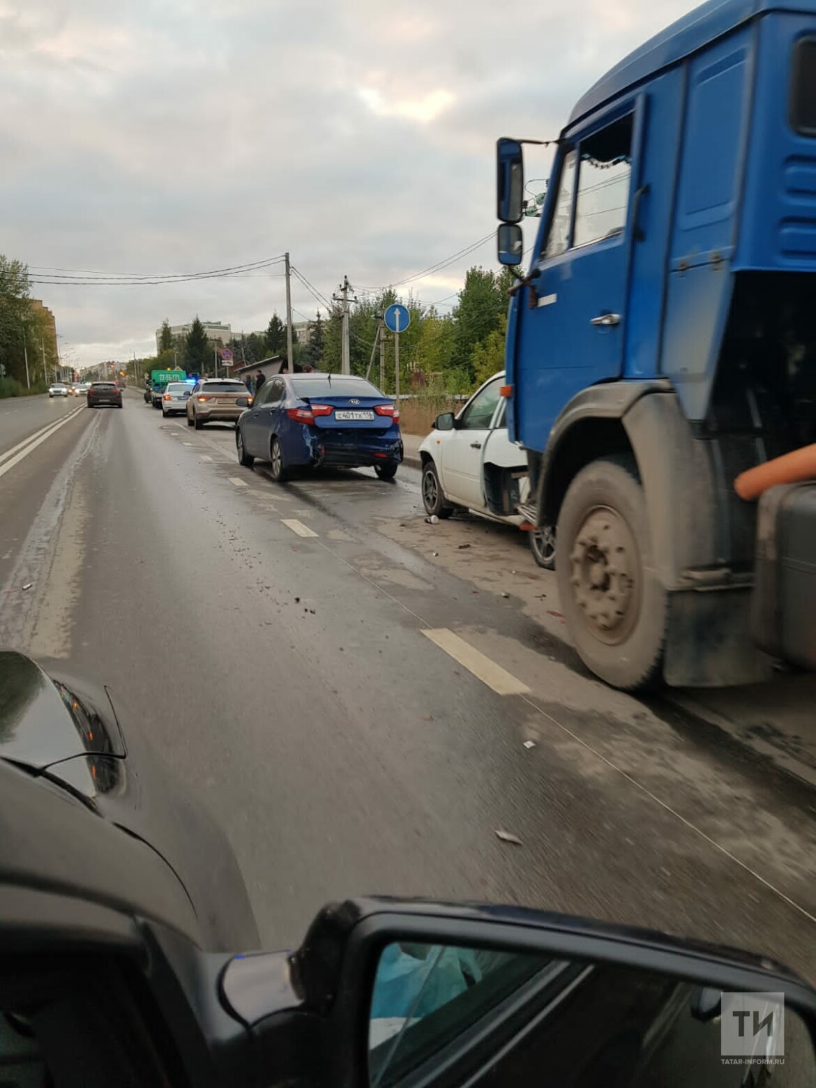 Авария, участниками которой стали по меньшей мере четыре легковушки и большегруз, произошла сегодня ближе к вечеру на улице Кул Гали со стороны улицы Центральная недалеко от ЖК «Изумрудный город».
