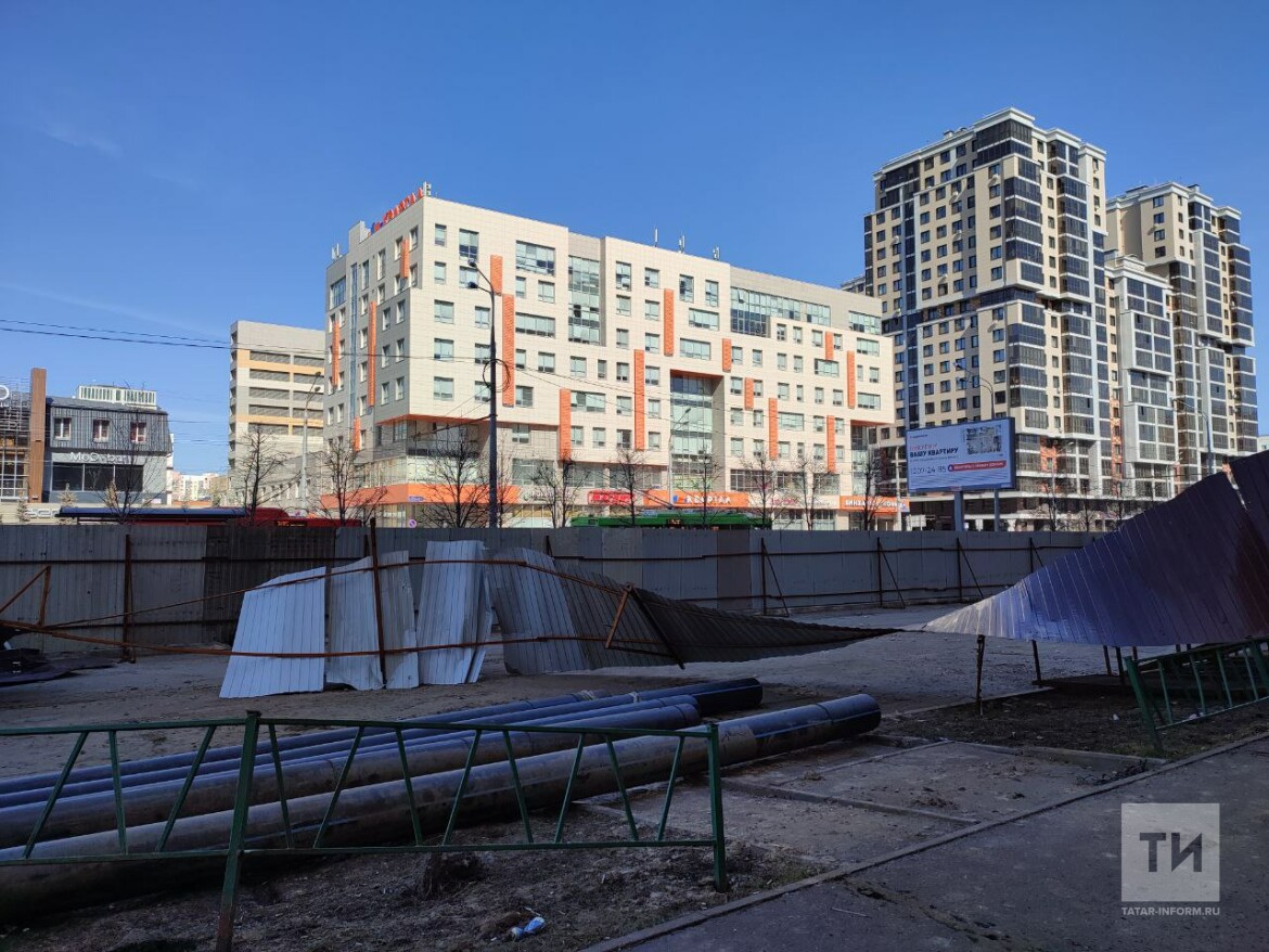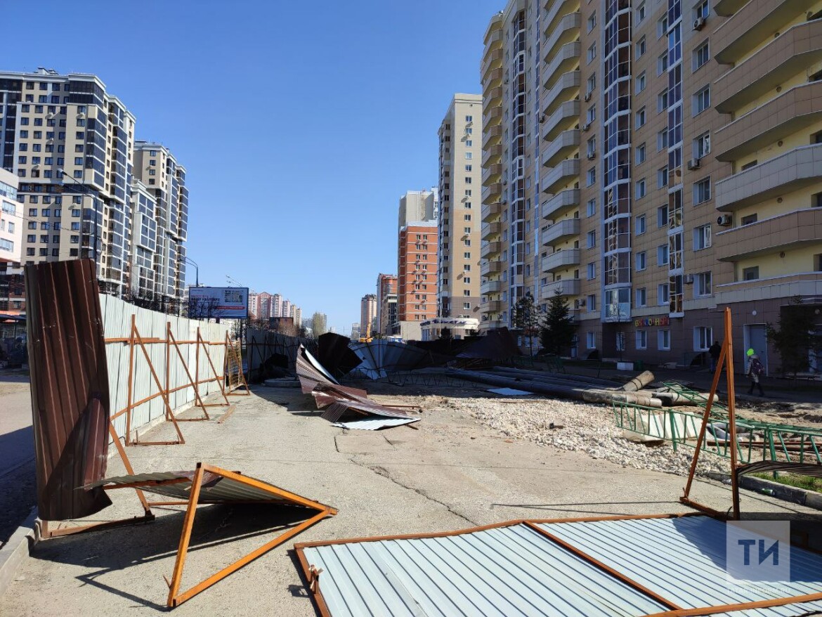 Из-за сильного порыва ветра в Казани упал строительный забор