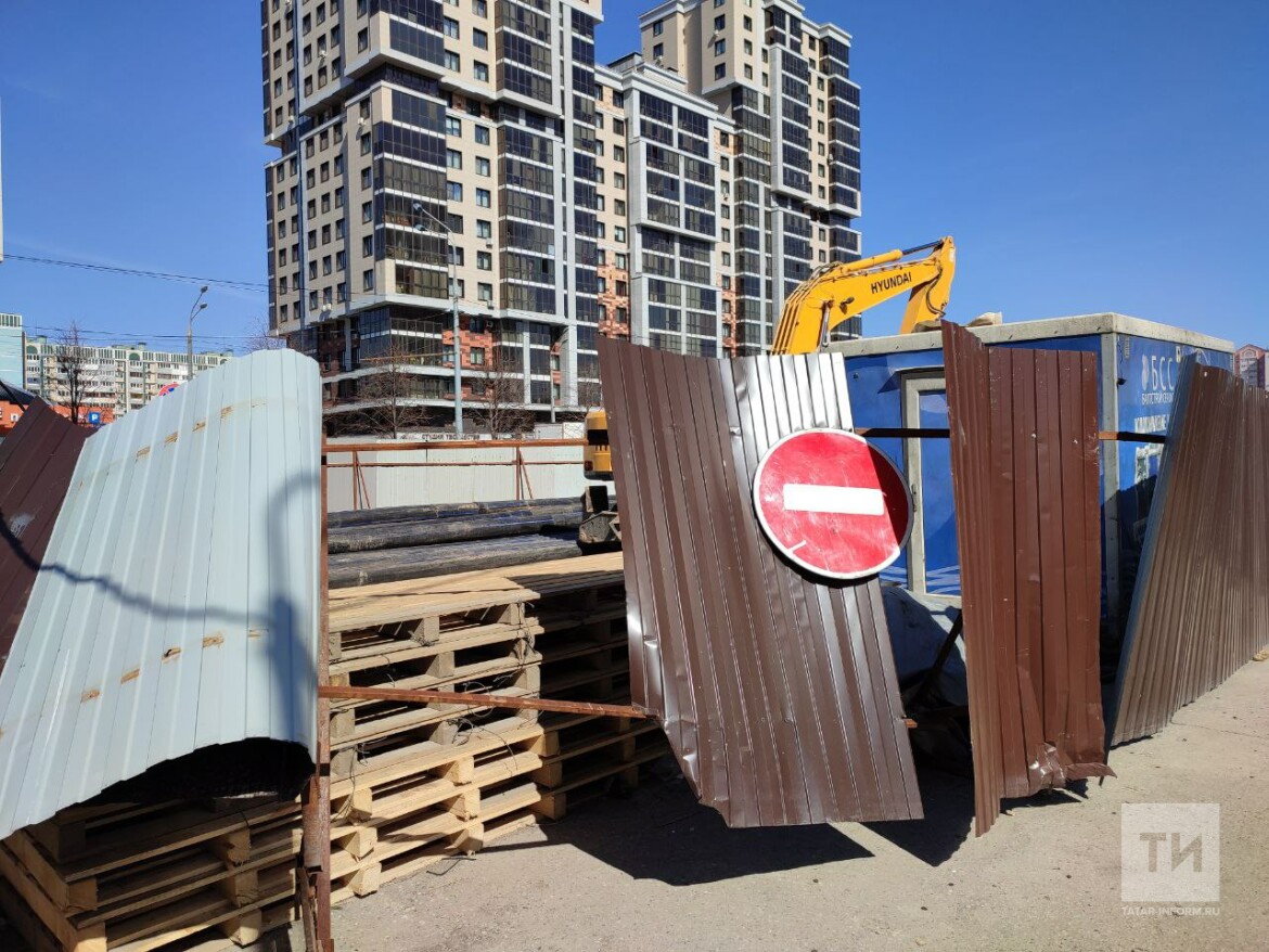 Как выяснилось, строительные навесы упали вдоль места, где прокладывают трубы. Часть забора оказалась на пешеходной дороге.