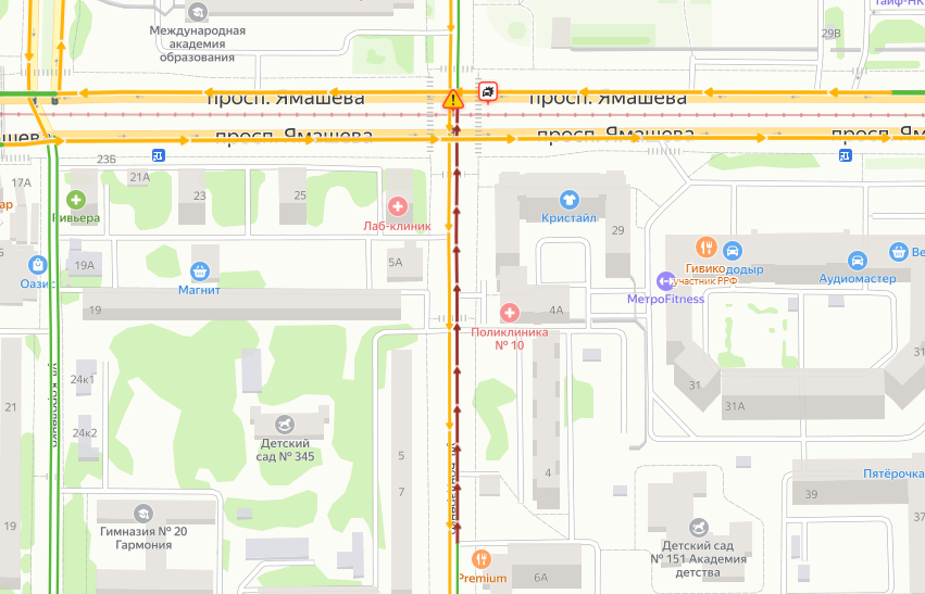 По данным сервиса «Яндекс.Пробки» из-за аварии на перекрестке образовалась пробка.
