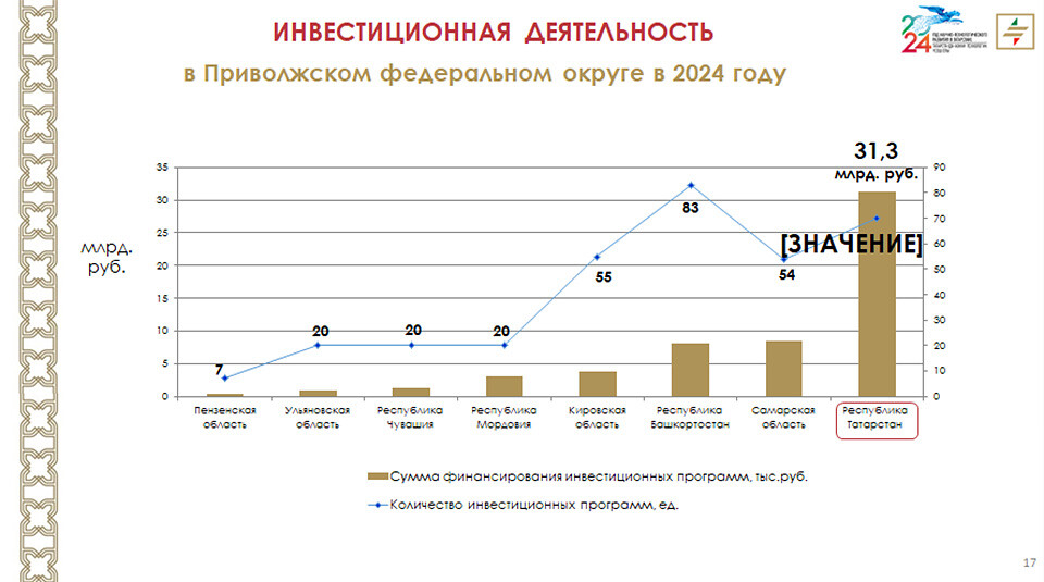 Татарстан – лидер в ПФО по финансированию инвестпрограмм