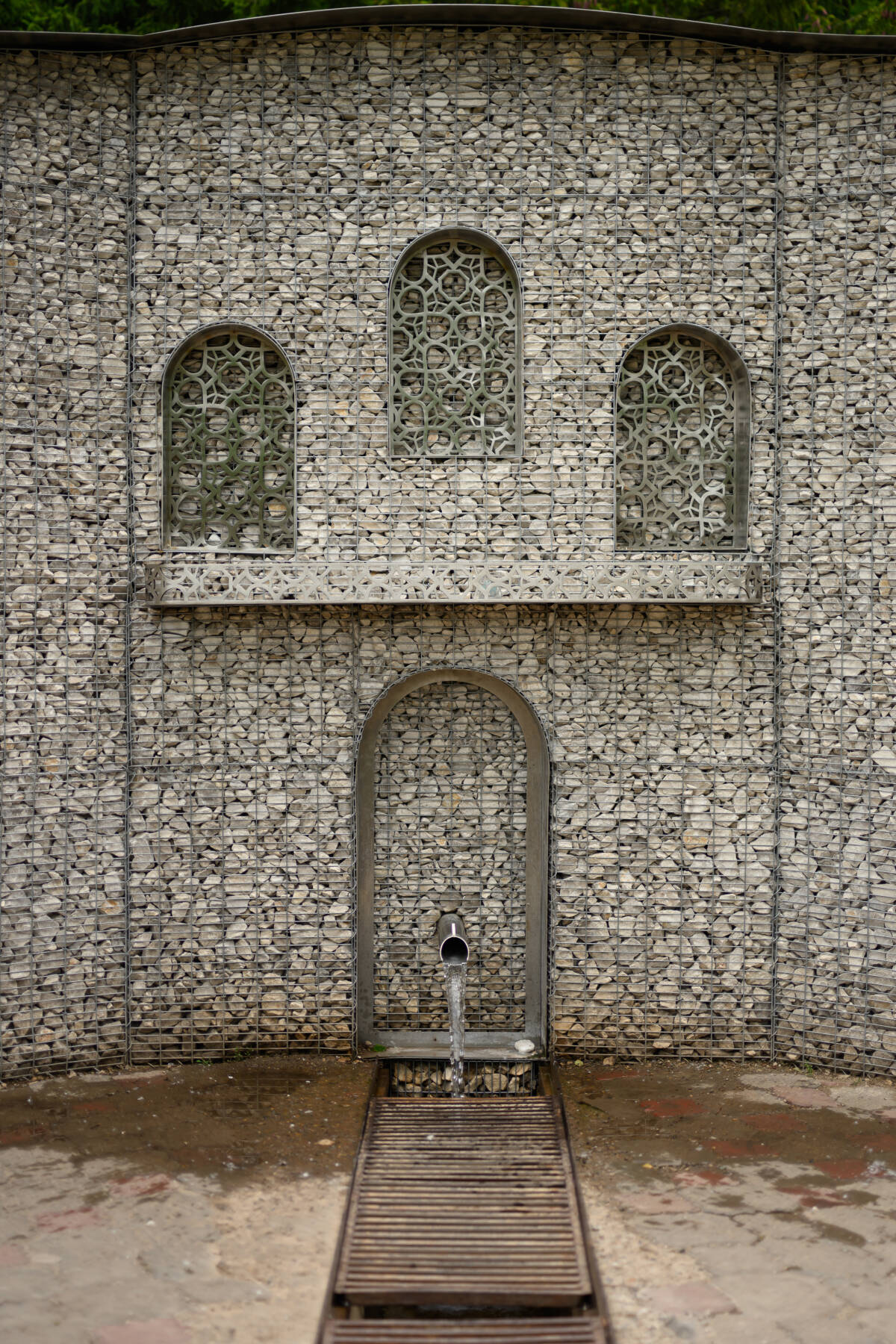 Обновился и павильон у источника. Его прежняя конструкция, возведенная в 1990-х, обветшала — трещины в кирпиче, разрушающиеся ступени. Архитекторы бюро «8 линий» подошли к задаче не просто как к ремонту, а как к восстановлению исторической идентичности.