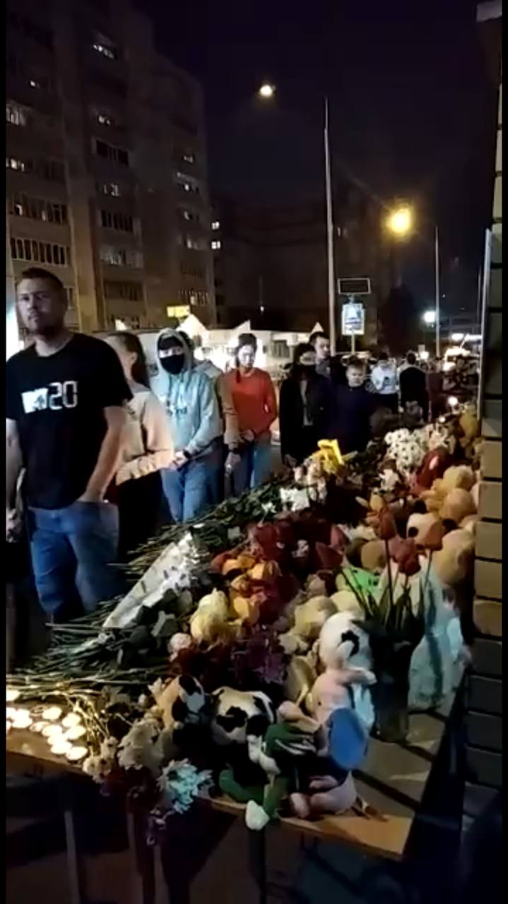 К мемориалу у казанской школы, где произошла стрельба, продолжают идти люди с цветами