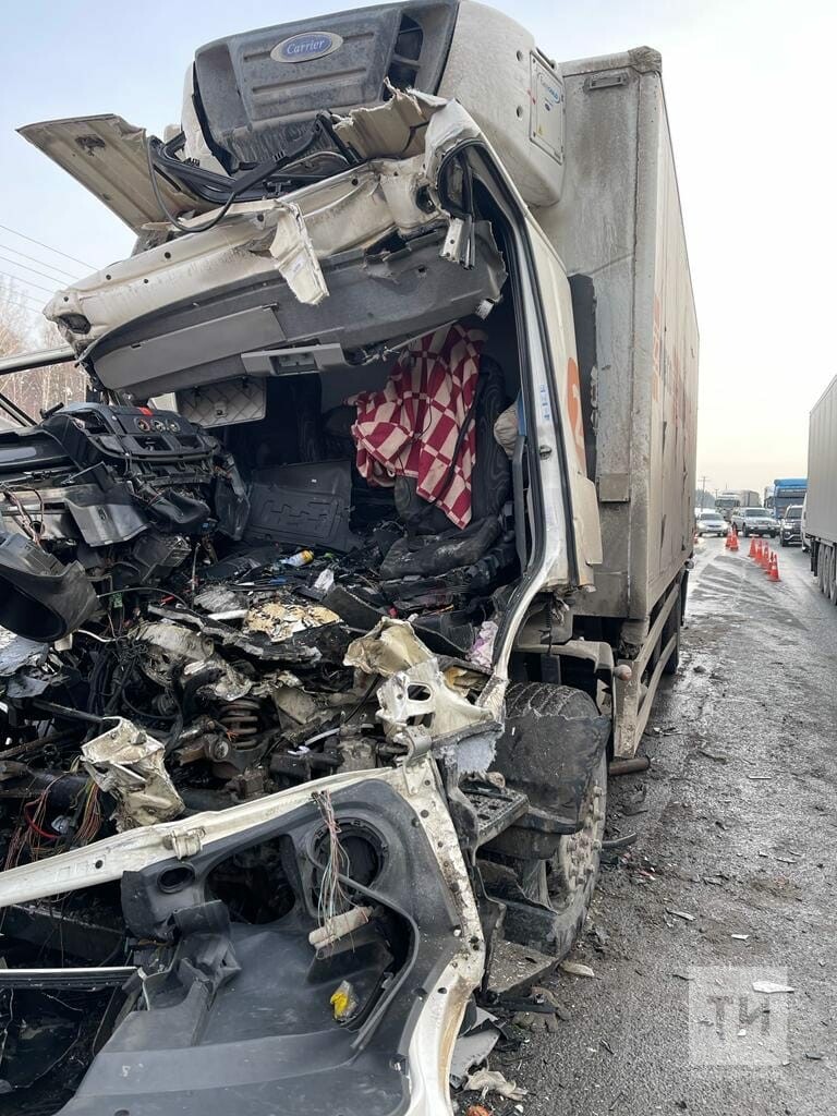 Кабина фуры превратилась в груду металлолома после ДТП с «КАМАЗом» на трассе в РТ