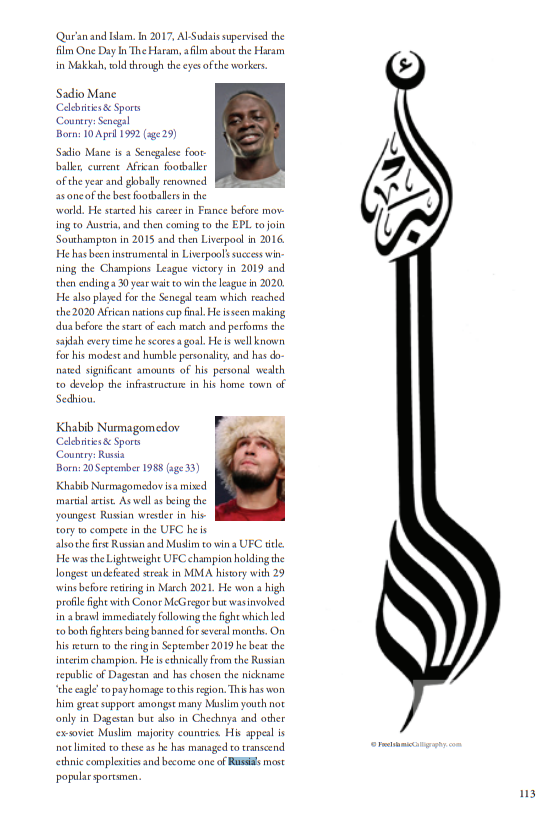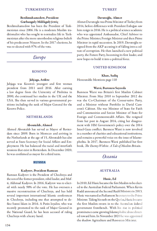 В разделе «Политика» к влиятельным мусульманам отнесен глава Чеченской республики Рамзан Кадыров.