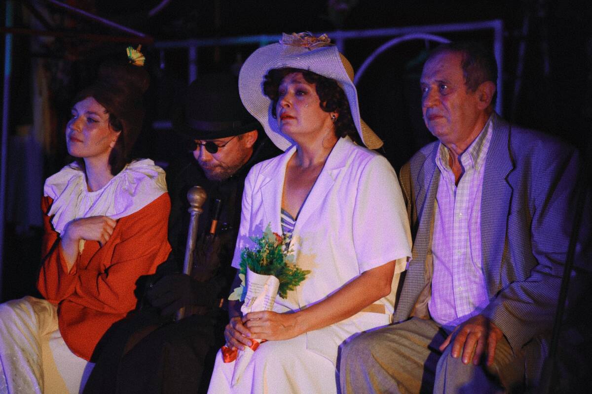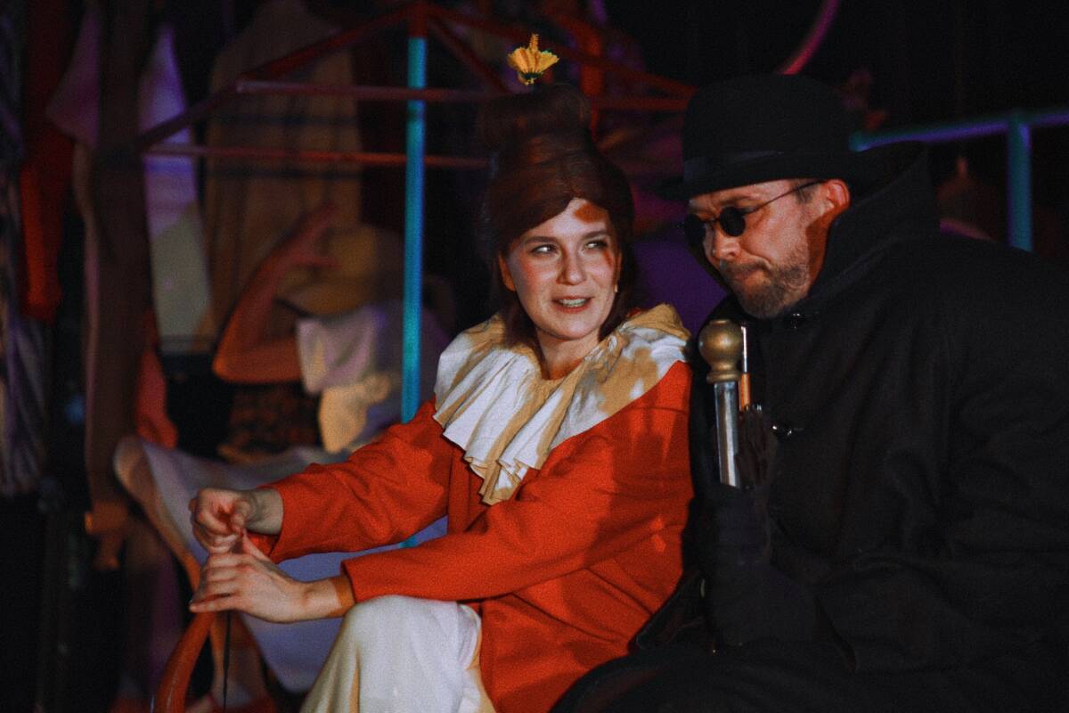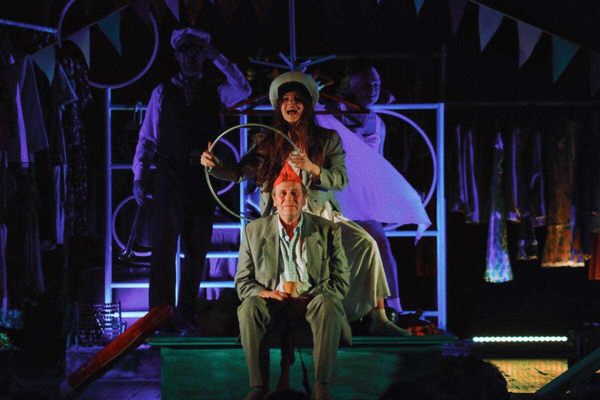 Подхватил режиссер и то, что юбиляр, актер Александр Яндаев, когда-то занимался в кружке пантомимы. В спектакле есть момент, когда персонаж Яндаева по-молодецки пластично парит в ностальгическом настроении. В программке к премьере есть ремарка, придуманная также Радионом Букаевым, – «веселый реквием».