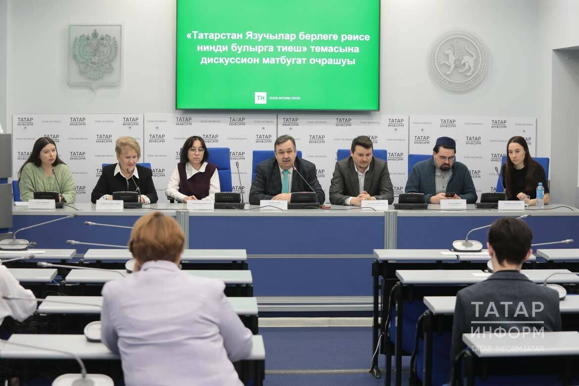 На дискуссионной пресс-конференции в «Татар-информе» писатели и журналисты обсудили ожидания, связанные с предстоящими выборами руководителя Союза писателей Татарстана. Во встрече приняли участие главный редактор журнала «Безнең мирас» и газеты «Мәдәни җомга» Лябиб Лерон, главный редактор журнала «Казан утлары» Рустам Галиуллин, журналист «Татар-информа» и газеты «Интертат» Рузиля Мухаметова, писатель, директор Дома татарской книги Айдар Шайхин, писательница Равиля Шайдуллина, сотрудницы журнала «Идел», молодые писательницы Гузель Закирова и Зулейха Камалова.