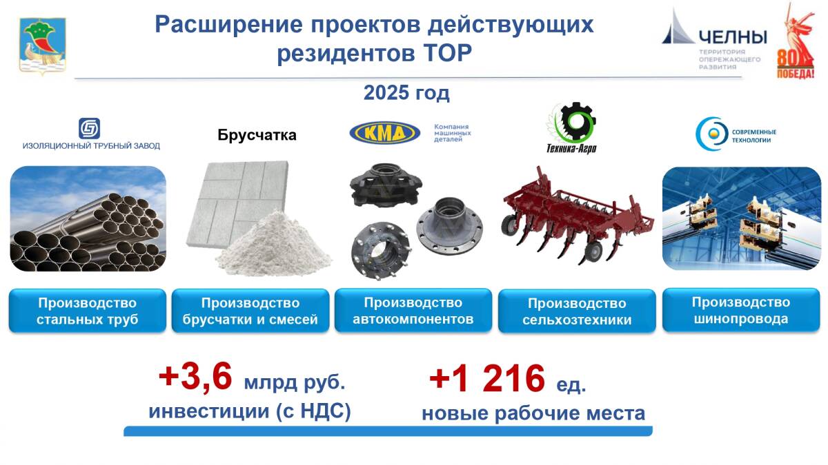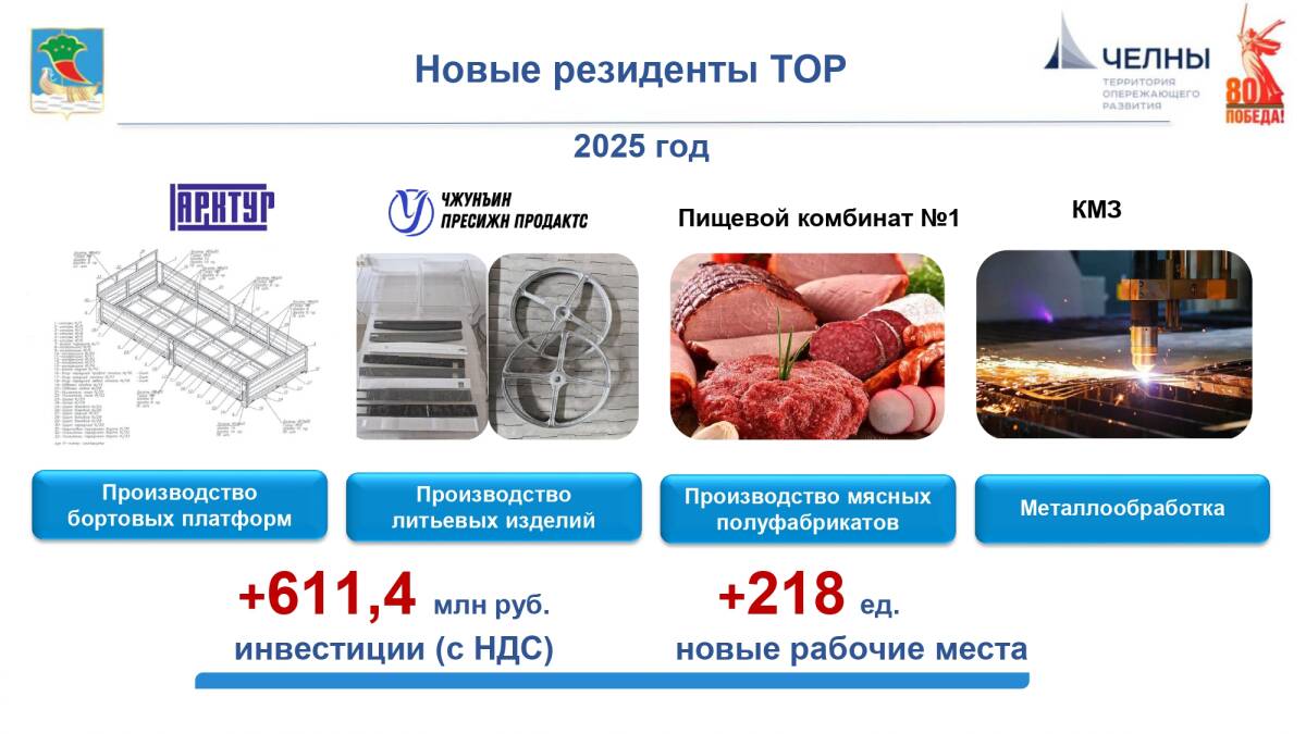 На долю челнинских резидентов пришлось 57% от всех инвестиций ТОР в республике и 74% выручки. За все время доходы инвесторов ТОР Челны составили около 500 млрд рублей.
