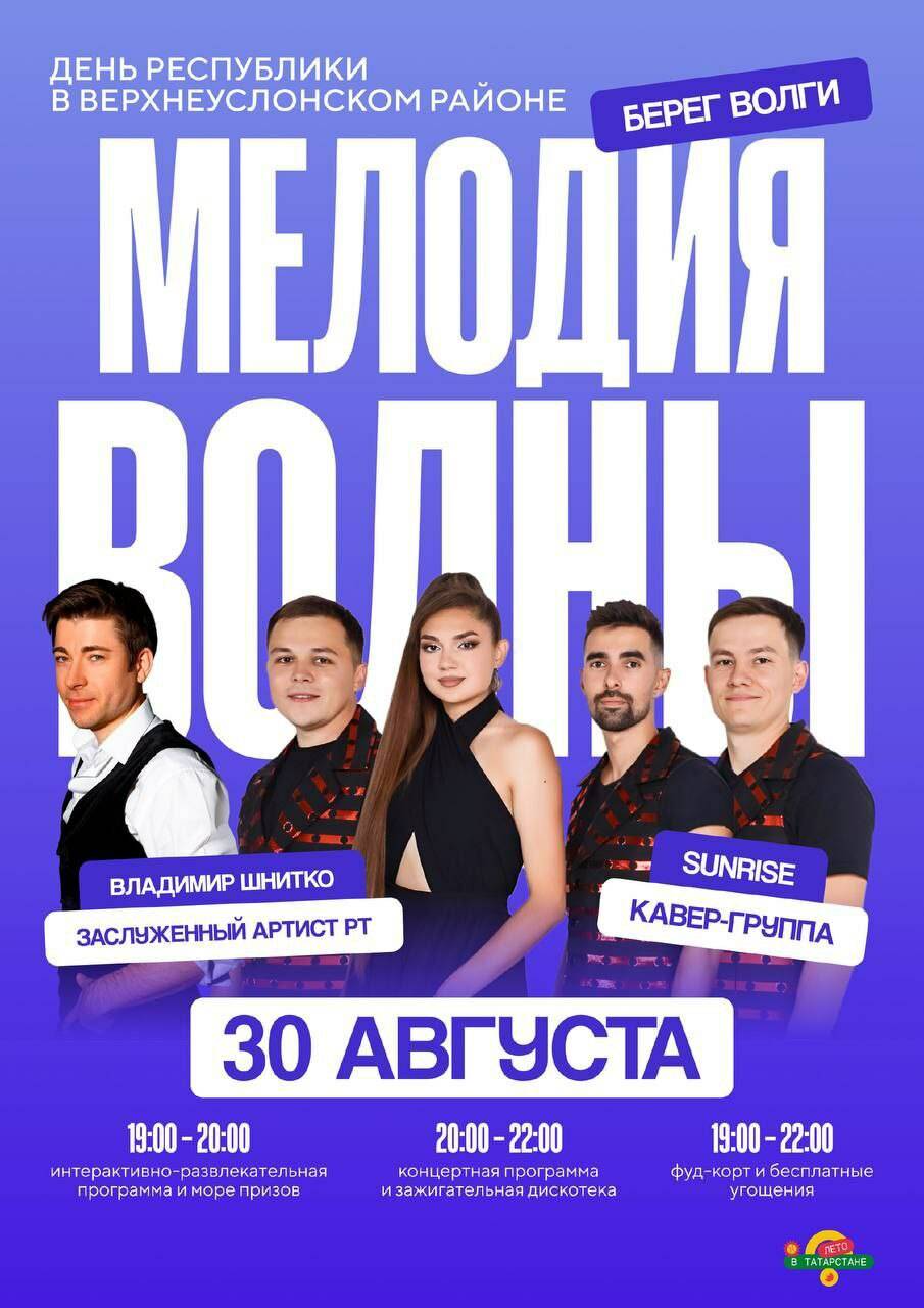 Также в Верхнем Услоне День Республики Татарстан отметят на набережной («Спасалка»). Мероприятие начнется 30 августа в 19:00 с развлекательного интерактива, а в 20:00 стартует концертная часть.